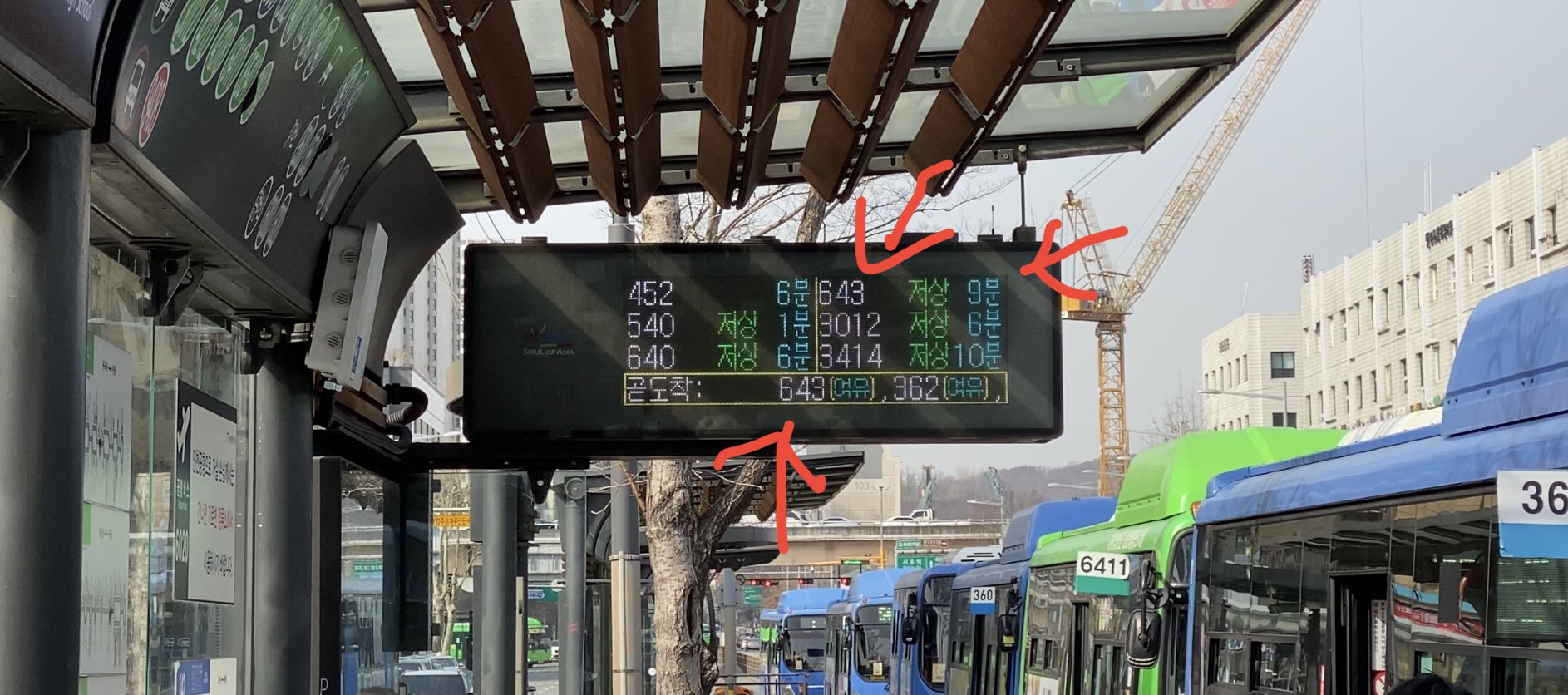 저도 매번 모든 번호를 일일이 확인했습니다. 번호 표시에 규칙이 있다고는 생각을 못했거든요. 처음에는 상식적으로 번호 순이겠거니 생각했지만 규칙에 어긋나는 예외가 많아서 버스 정보가 업데이트 되는 순서에 따라 불규칙하게 표시되는 거라고 생각했습니다.