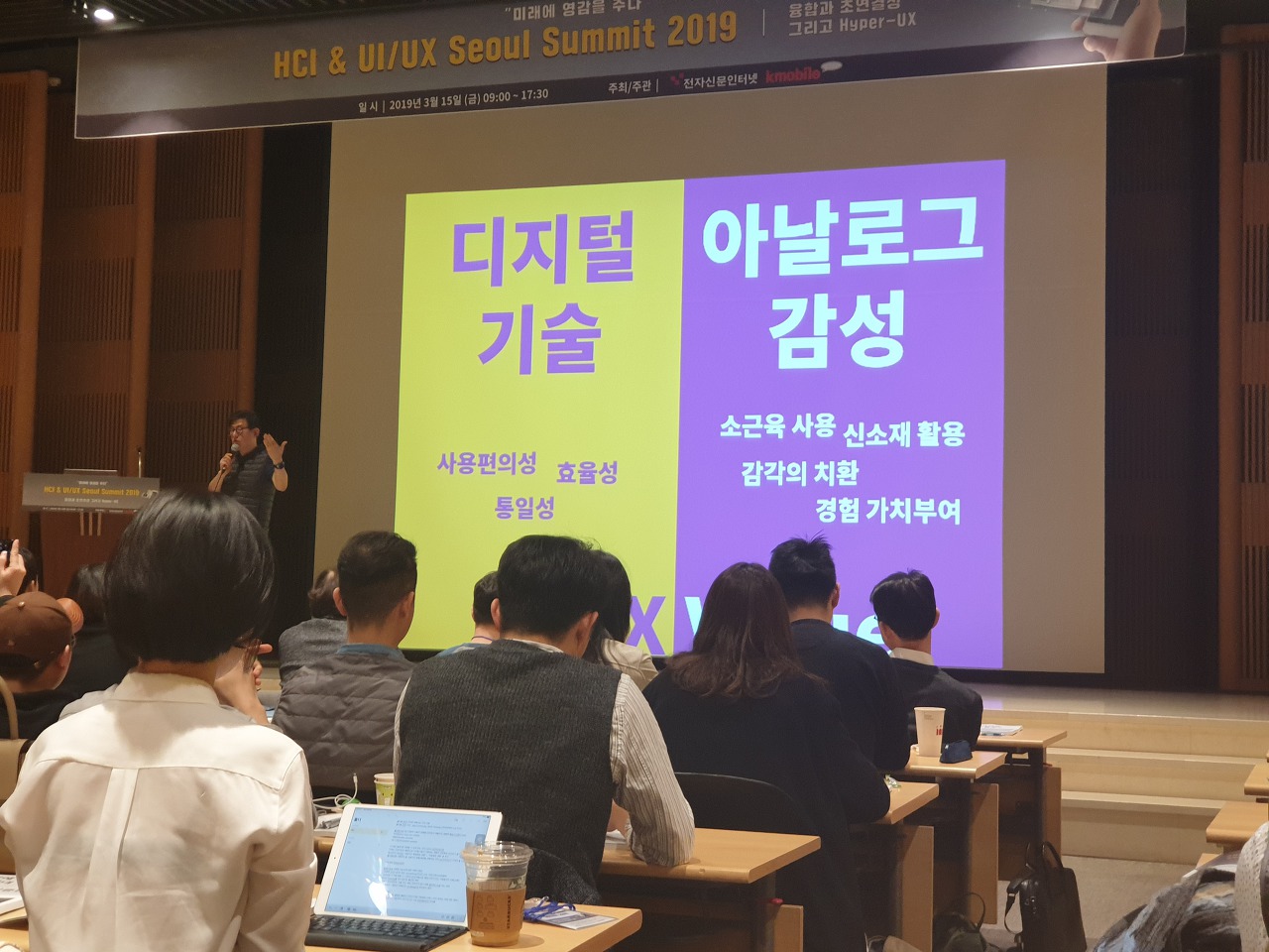 지난 3월 15일 HCI & UI/UX Seoul summit 2019가 잠실에서 개최했습니다. 인공지능, 빅데이터, IoT와 같은 기술 발전이 가져온 4차 산업혁명에서 우리 삶은 빠르게 변하고 있습니다. 그리고 얼마 전 공개된 삼성 갤럭시 폴드는 12년 만에 단순 스크린 크기가 아닌 모바일 폼펙터를 바꿔 놓았습니다. 강연에서는 다양한 분야의 전문가들이 새로운 사용자 경험에 대해 고민한 경험을 소개해 주셨습니다. 그중 인상 깊었던 몇 가지 세션을 소개합니다.