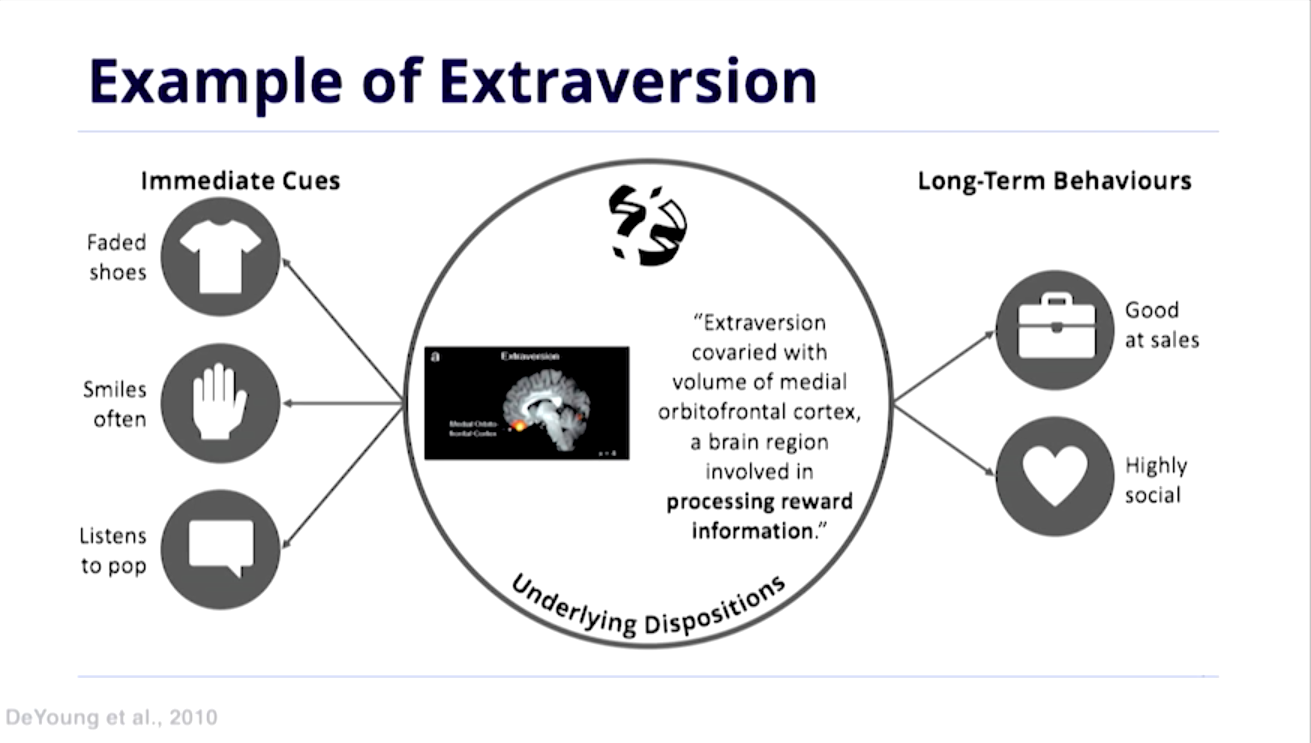 사람의 심리적 유형을 5가지 성향으로 구분하는 ‘5대 성격 특성 요인(BIG 5)’ 이론이 있는데요. 개방성, 외향성, 신경증, 우호성, 성실성으로 구분합니다. 궁금하신 분들은 여기서 테스트해 보실 수 있어요. 이런 성격 요인은 유전적, 뇌 구조적 요인 때문에 차이가 생긴다고 합니다. 개인의 성향은 표면적 행동으로 드러나, 우리가 관찰할 수 있게 됩니다. 또한 이런 행동을 통해 장기적으로 이 사람이 어떻게 행동할 것인가를 예측해 볼 수도 있겠습니다.