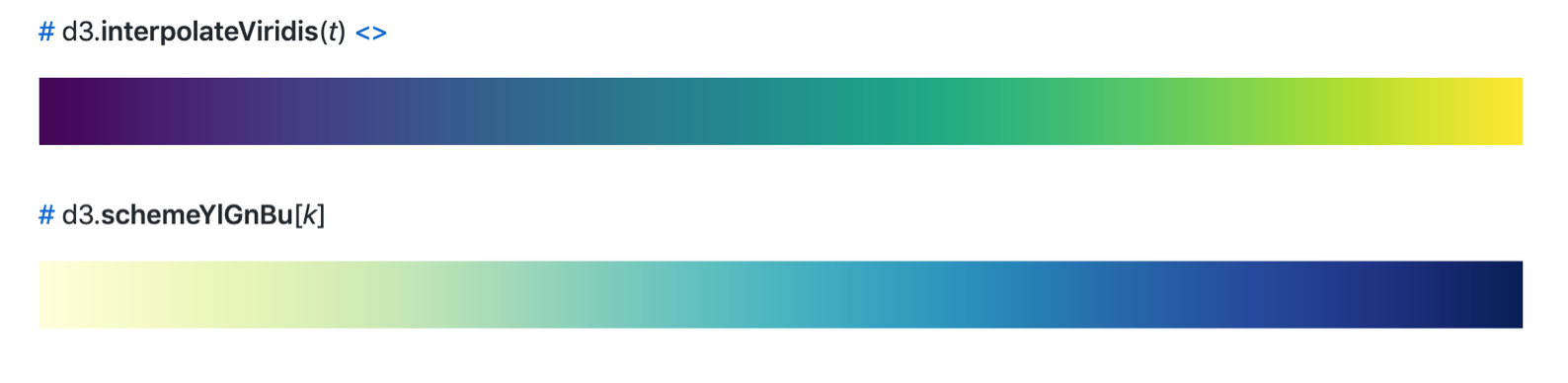 코로플레스 맵은 지도 위에 색을 칠해 값을 나타내는 방법이니 컬러맵 선택이 중요합니다. d3 라이브러리에 잘 만들어진 컬러맵이 제공되니 용도에 맞게 잘 골라 사용하면 됩니다. https://github.com/d3/d3-scale-chromatic