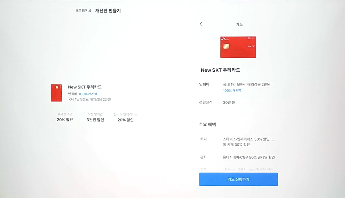 카드 맞춤 추천 개선안(좌), 추천 배너(우)