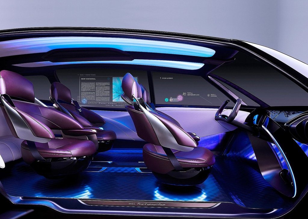 2017년 도요타 모터쇼를 위한 프로젝트입니다. 컨셉, 프로토타입 그리고 워크샵과 실제 제작까지 고객사와 함께 진행했습니다. 이 프로젝트의 목적은 자율주행 컨셉카의 내부 인터페이스를 구현하는 것이었습니다. 도요타에서 원한 것은 자율 주행으로 사람들이 더 이상 운전을 안 한다면, 내부 공간을 어떻게 활용할 수 있을까였습니다. 이 자동차는 총 4개의 자율주행 단계를 가지고 있습니다. 네 번째 단계의 경우 가장 높은 단계로 탑승자가 아무것도 하지 않는 자율주행 상태입니다. 이때 차 내부 공간을 사무실 환경처럼 만드는 것을 생각했습니다. 창문은 프레젠테이션하는 스크린으로 활용하고, 더는 운전할 필요가 없으니 좌석을 회전시켜 회의할 수 있도록 했습니다. 운전대는 대시보드와 완전히 밀착되어 있으며, 운전대 안쪽 대시보드에는 개인화된 AI가 있습니다. 창에는 어떤 사람들이 탑승하고 있는지 보여주고, 무드·환경·상황에 따라 조명이 자동으로 조절됩니다. 또한 모두에게 자신만의 AI가 부여되어 다른 차를 타도 자신의 AI를 가지고 다른 차에 탑승할 수 있습니다. AI는 그 사람이 어떤 스타일로 운전하는지, 조명을 어느 정도로 원하는지, 어디를 많이 가는지 등의 정보를 담고 있습니다.