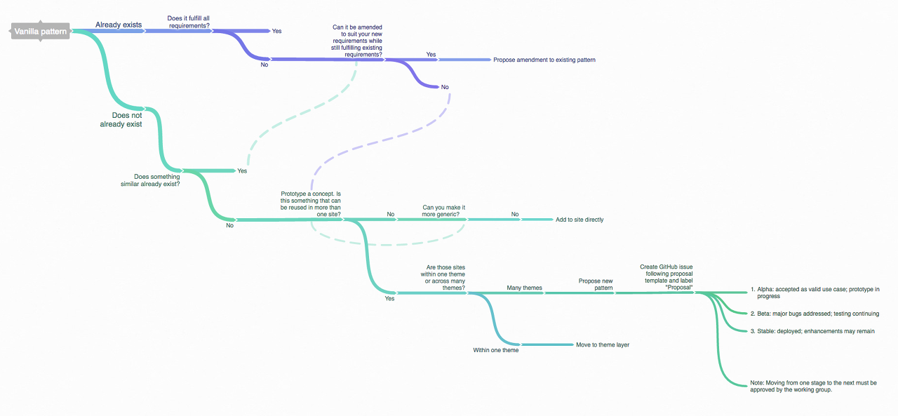 Make it adaptable 지속해서 발생하는 변화를 수용할 수 있도록 해야 합니다. 사용자의 피드백을 수집하고 운영팀과 의견을 나눌 수 있는 커뮤니케이션 채널을 만들고 명확한 거버넌스를 수립해 효과적으로 디자인 시스템을 운영하고 관리할 수 있는 프로세스를 구축해야 합니다. 이미지 출처: Atomic design, Canonical 사의 웹 가이드라인 의사결정 프로세스Make it maintainable 디자인 시스템이 쉽게 제품에 동기화될 수 있는 환경을 구축해야 합니다. 하나의 변경된 UI 패턴을 반영하는데 너무 많은 비용과 노력이 들게 된다면 디자인 시스템의 활용도는 점점 떨어지게 될 것입니다.