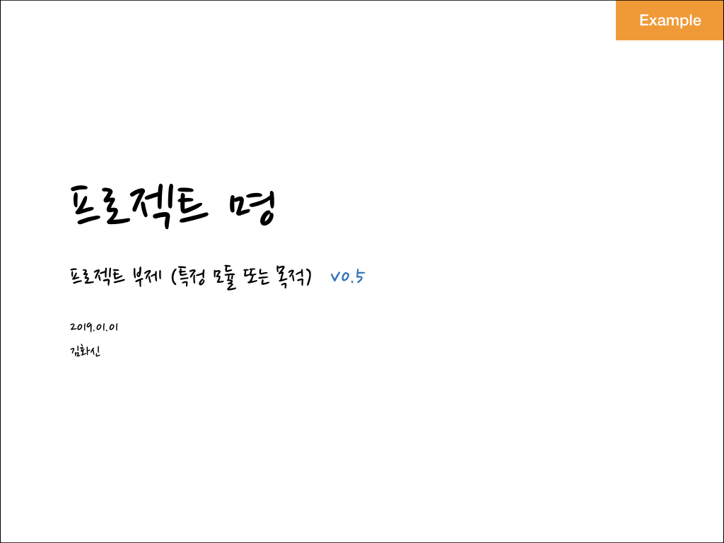 표지는 필요한 내용만 간략하게 만들자. 여기에는 프로젝트 이름, 문서 버전, 작성 날짜, 작성자 또는 부서명이 들어가. 프로젝트 내에서 개별 서비스나 기능별로 문서를 분리한다면 프로젝트 이름과 함께 부제를 적어야겠지. 페이지가 많거나 서비스를 구성하는 단위가 여러 개일 때는 섹션으로 묶어서 중간중간 간지를 넣어줘. 그러면 원하는 페이지를 한 번에 찾기 쉬워지겠지. UX 디자이너라면 문서를 받아 보는 사용자도 배려할 수 있어야겠지?