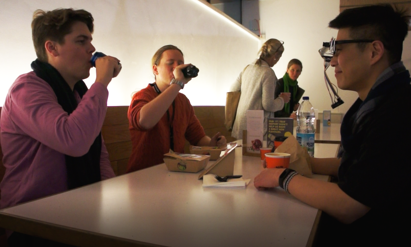 프로젝트를 수행 당시 구글의 AR 글라스가 사생활 문제에 대한 이슈가 생긴지 얼마 되지 않았기 때문에 먼저 “사람들이 자신의 경험을 남들과 공유하는 것에 괜찮을까?”에 대한 현실적인 검증이 먼저 필요하였습니다. 이를 위해 안경테에 카메라를 달아서 끼고 다니며, 일하면서 만났던 사람들에게 이 장치는 AR글라스와 같은 기능을 한다고 알려주었습니다.