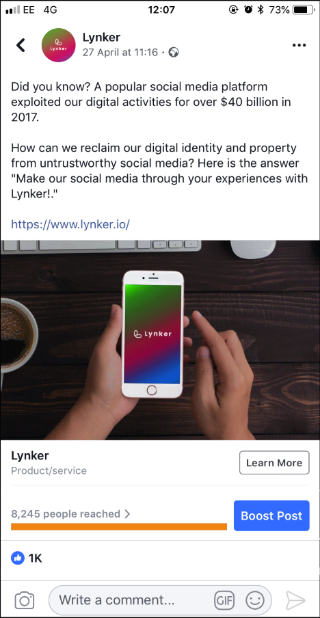 앞선 두 번의 테스트를 통해 얻은 같은 소셜 그룹에 속한 사람들끼리 즐거웠던 적절한 브랜드 충성도를 가진 브랜드의 경험을 사진으로 공유하고 이를 위해 적절한 보상이 주어진다면 오늘날 시장에서 사용자의 반응을 이끌어 낼 수 있을까? 란 가설을 검증하기 위해 SNS를 이용하였습니다. SNS에 이 서비스가 실제로 작동하는 것과 같이 서비스 페이지를 만들고 포스트를 올려 이를 SNS 광고 서비스를 사용하여 잠재적 고객층이라고 생각한 타깃을 지정하여 홍보를 하고 이에 대한 리액션으로 시장 적합성을 확인해 볼 수 있었습니다. 당시에 평균 SNS의 광고 클릭 횟수, 좋아요 횟수의 약 100배의 리액션을 얻음으로써 가능성을 확인할 수 있었습니다.