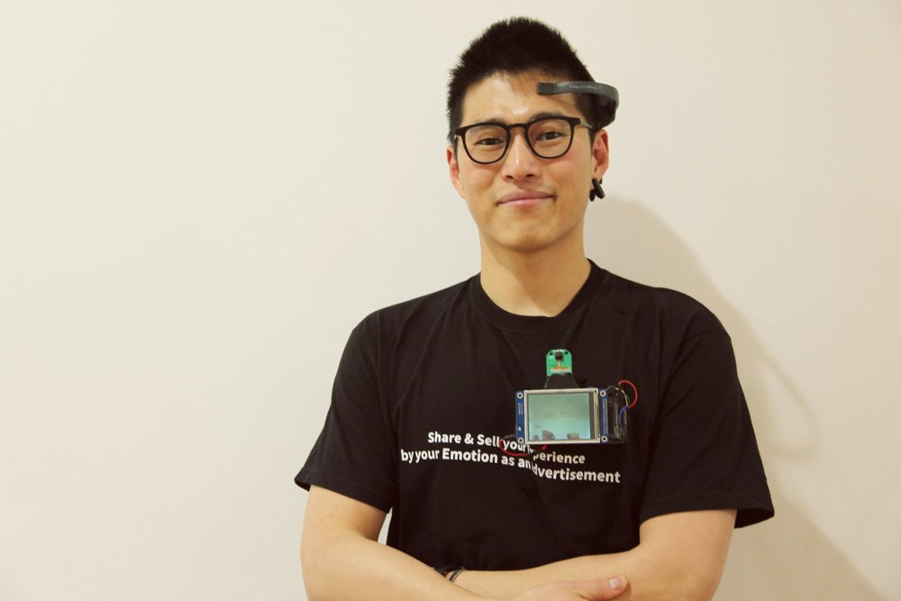 저는 한 전시장에서 사진의 장비를 끼고 관람객들과 소통을 했습니다. 이 장비는 카메라와 디스플레이 그리고 뇌파인식장비로 구성되어있으며, 제가 행복감을 느낄 때 사진을 찍어 디스플레이로 보여주는 장치입니다. 하지만 관람객들에게는 AI알고리즘으로 카메라에 보이는 사람들이 행복해할 때 얼굴을 인지하여 사진을 찍고 이를 분석하여 실시간으로 본인들이 입은 옷, 낀 안경들의 브랜드 홍보를 위해 사용한다고 이야기를 하고 반응을 살폈습니다.
