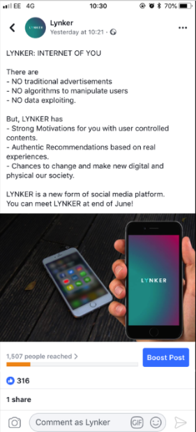 앞선 두 번의 테스트를 통해 얻은 같은 소셜 그룹에 속한 사람들끼리 즐거웠던 적절한 브랜드 충성도를 가진 브랜드의 경험을 사진으로 공유하고 이를 위해 적절한 보상이 주어진다면 오늘날 시장에서 사용자의 반응을 이끌어 낼 수 있을까? 란 가설을 검증하기 위해 SNS를 이용하였습니다. SNS에 이 서비스가 실제로 작동하는 것과 같이 서비스 페이지를 만들고 포스트를 올려 이를 SNS 광고 서비스를 사용하여 잠재적 고객층이라고 생각한 타깃을 지정하여 홍보를 하고 이에 대한 리액션으로 시장 적합성을 확인해 볼 수 있었습니다. 당시에 평균 SNS의 광고 클릭 횟수, 좋아요 횟수의 약 100배의 리액션을 얻음으로써 가능성을 확인할 수 있었습니다.