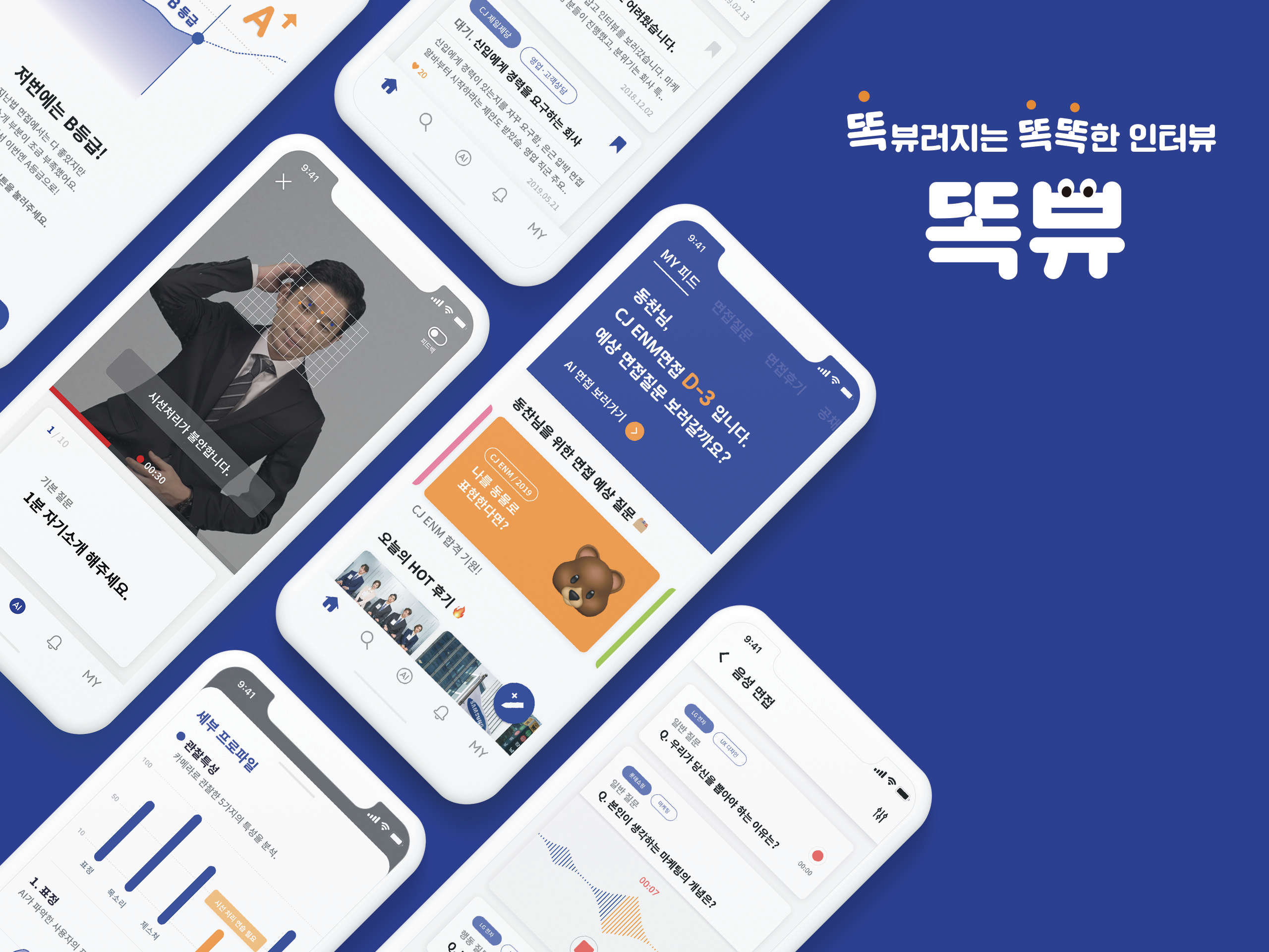 똑뷰러지는 똑똑한 인터뷰, 똑뷰는 AI와 빅데이터를 이용한 면접 체험 서비스이다. 빅데이터를 활용해 나에게 딱 맞는 정보를 얻길 원하는 사용자에게 맞춤형 정보를 제공하고 AI 면접관과 함께 카메라와 음성을 통한 AI 모의 면접을 진행 할 수 있다. 이를 분석하여 다양한 항목의 피드백과 면접 정보 제공으로 면접 합격률을 높여준다.