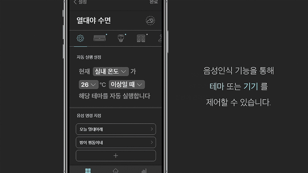 'cleep'은 AI/IoT 기술을 활용하여 자동으로 수면 환경을 조성해주고, 수면의 질 향상을 돕는 수면 돌보미 서비스이다. 설정해 둔 수면 테마를 자동으로 실행해주는 '수면 환경 자동 조성 기능', 통계를 바탕으로 한 '맞춤 수면 팁', 기상 시 자동으로 추가 알람을 중지해주는 '수면존 기반 알람 제어 기능'으로 사용자의 귀찮음을 덜고 쾌적한 수면을 제공한다. 주로 밤에 사용하는 서비스임을 고려하여 앱 디자인은 night 모드와 day 모드 두 가지로 제작되었으며, 각 모드는 시간대에 맞게 적용된다.