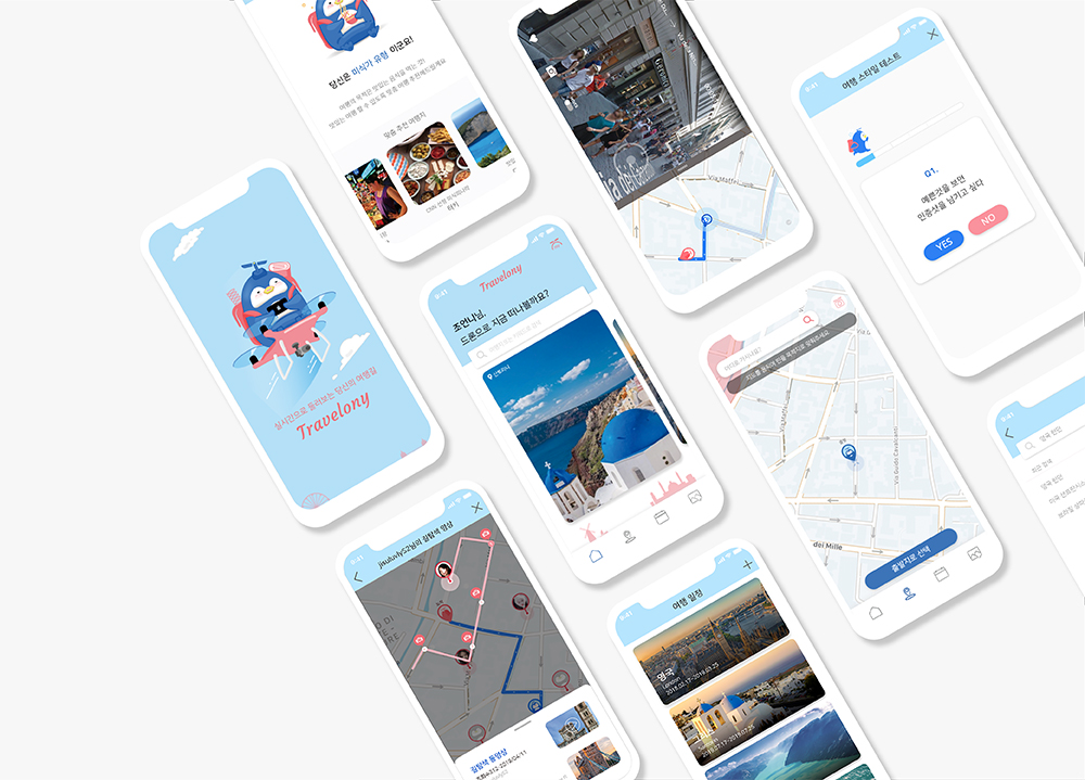 미래를 바꿀 4차 산업혁명의 기술 중 하나인 드론은 모바일 앱을 통해 해외로의 원격조종이 가능해지는 등 빠른 속도로 기술이 개발되어 활용 범위가 넓어지고 있다. 우리는 이러한 발달된 드론 기술을 활용하여 그동안 생소한 여행지의 현지 분위기와 정보를 알지 못해 불안감을 느꼈거나 길 찾기가 어려워서 색다른 여행을 도전하지 못했던 사용자들의 문제를 해결하고자 했다. 실시간 길 탐색으로 정보가 없는 여행지도 안전하게 여행할 수 있도록 도와주는 트래블로니는 다양한 여행 경험의 기회를 제공한다. 사용자는 여행 전 트래블로니로 드론을 원격 조종하여 여행지를 탐색하고 일정을 계획하여 더욱 안전한 여행을 할 수 있다.