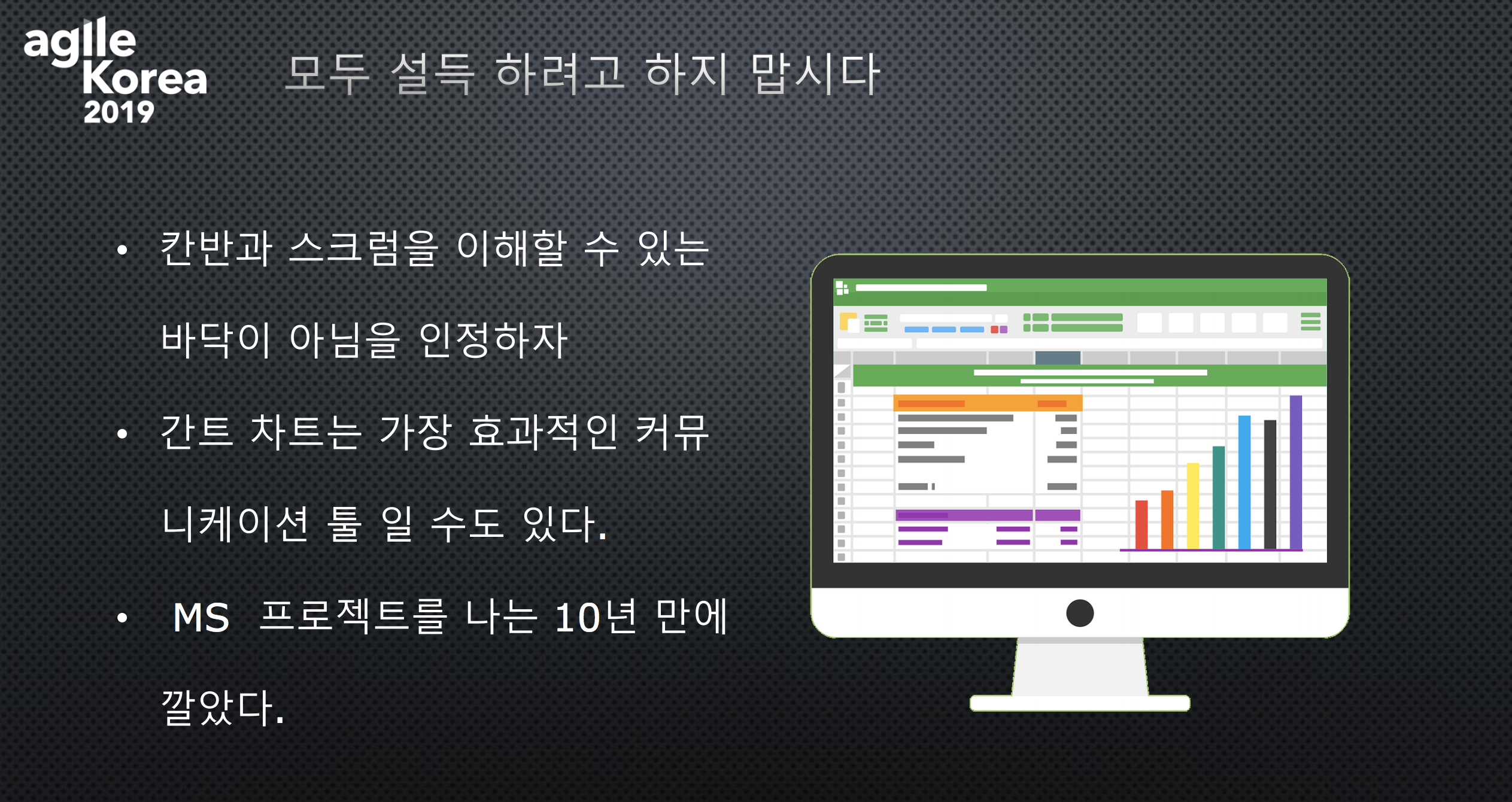 그는 스크럼과 칸반과 같은 애자일 방법을 연구자들이 이해하기 어려울 수 있음을 인정하며, 모두를 설득하려고 하지 말라고 말했습니다. 대신 본인이 속한 팀의 구성원들과 소통할 수 있는 효과적인 커뮤니케이션 툴을 찾는 것을 강조했습니다.