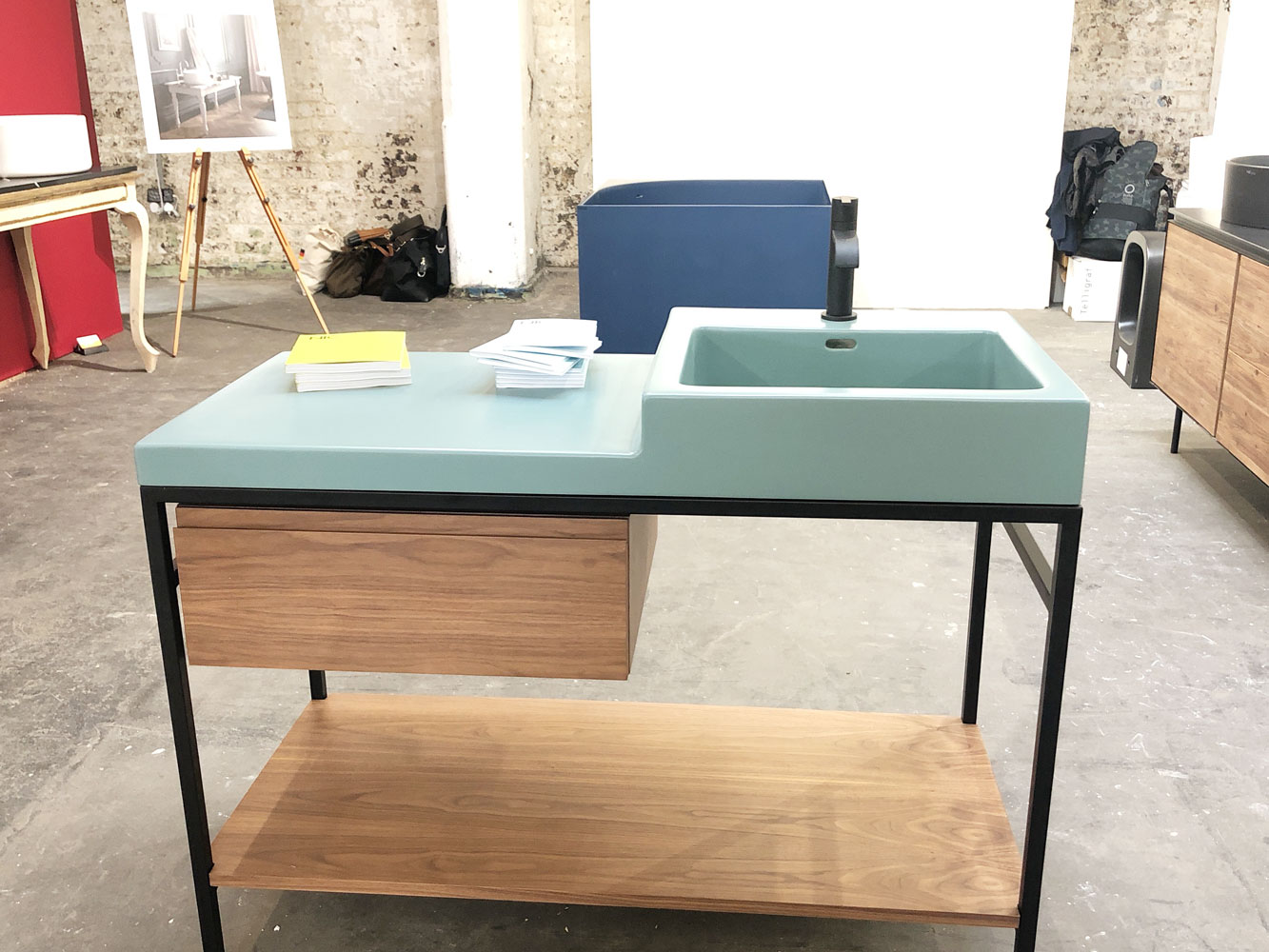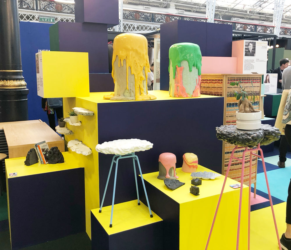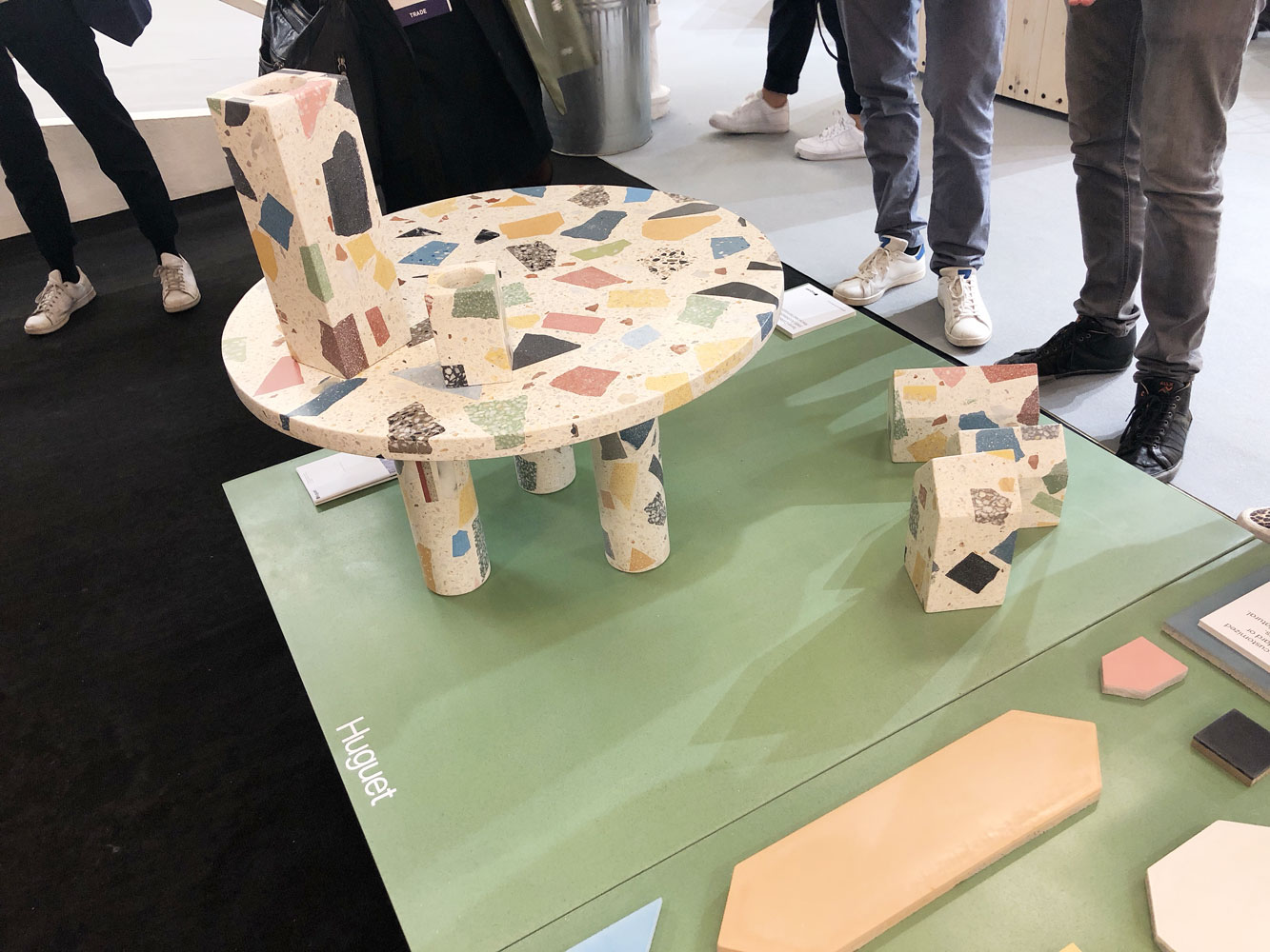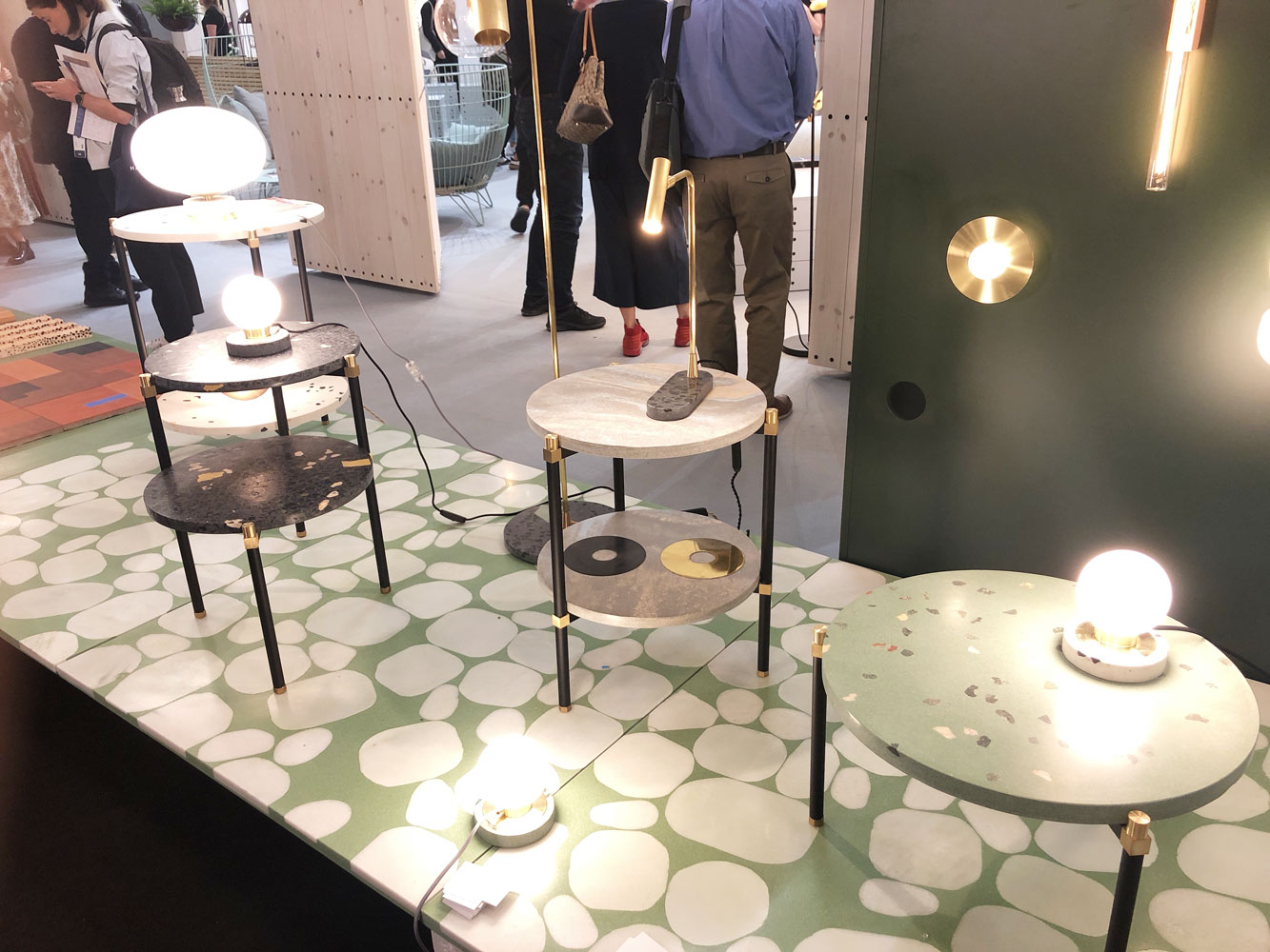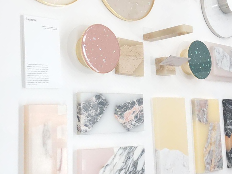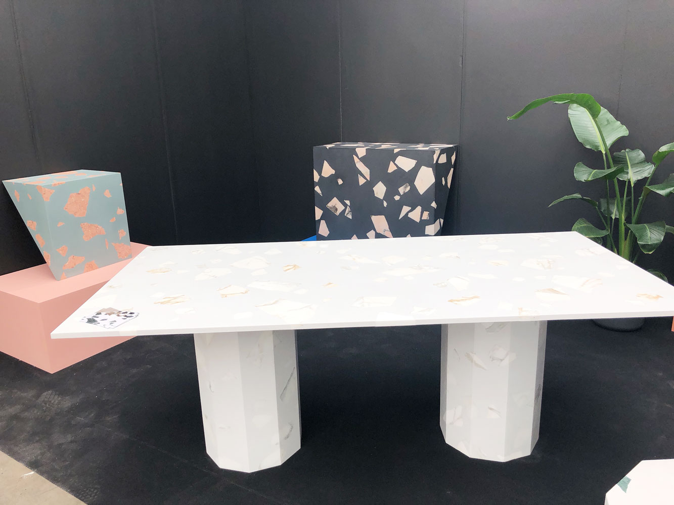 테라조 스타일의 작업물들도 많이 볼 수 있었는데요. 브랜드, 독립 디자이너들이 아래와 같은 합성 대리석 소재로 만들어낸, 색감이 인상적인 작업이 많았습니다. (바닥재에서 유행하는 소재라고 느껴질 정도로 많이 사용하시더라고요.)