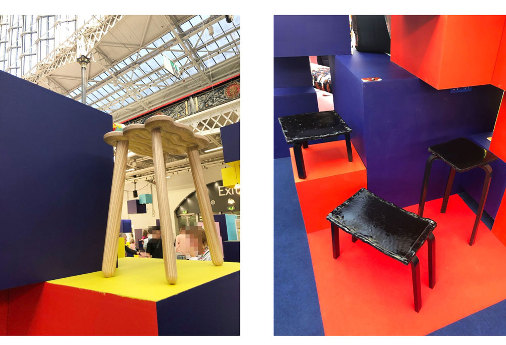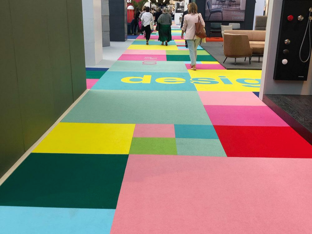 해당 전시에서 가운데 Design London이라는 섹션은 입장하자마자 가장 중앙을 위치하고 있었는데, 유명 인테리어 브랜드들을 엄선하여 전시공간이 마련된 구역이었습니다. 상단에 대형 타이포 플래카드가 설치되어 있고, 바닥 카펫이 패치워크 식이었는데 카펫 컬러에 변화가 있어 다른 전시보다 집중되어 보일 수 있도록 공간이 구성되어 있었습니다.