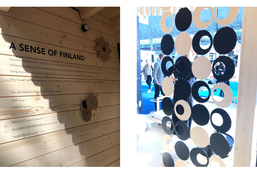 건강한 생활환경에 초점을 맞춘 핀란드 가구, 제품, 조명을 가장 잘 표현하여 핀란드 철학을 표현한 공간입니다. 특별히 지어진 에코 로그 하우스는 지속 가능성, 웰빙 및 건강한 생활환경에 중점을 둔 가구, 제품 및 조명으로 꾸며진 공간이었습니다. 핀란드 철학이 담긴 공간이다 보니, 모든 공간의 소재들에서 Eco스러운 느낌을 강하게 받을 수 있었습니다.