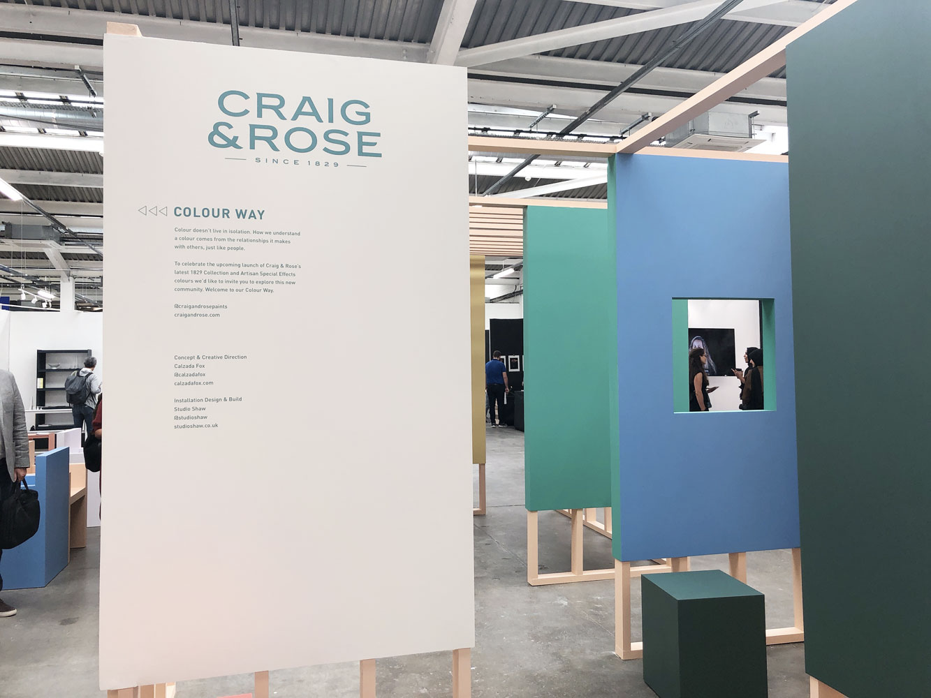 Craig & Rose는 영국에서 가장 오래된 고급 페인트 제조업체 중 하나인데 페어에서 11개의 색조를 출시하는 것을 축하하기 위해 해당 전시가 준비되었다고 합니다. (컬러 에이전시 중 하나인 Calzada Fox에 위탁하여 전시를 함께 진행)