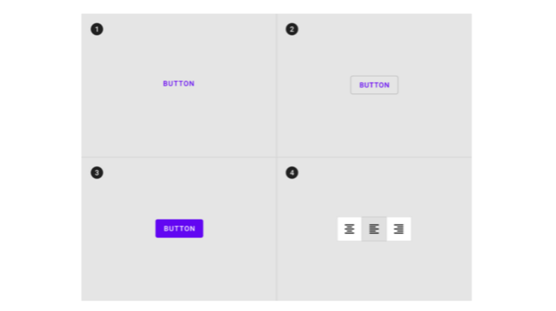 중요도 조정에 있어 컬러만큼 주요한 역할을 하는 것이 이러한 밀도와 크기 표현입니다. Google Material Design에서 정의한 것처럼 버튼의 유형을 Contained / Outline / Text로 나눈 것이 밀도 표현의 예입니다. 컴포넌트가 가지고 있는 밀도 및 면적이 늘어나면 프라이머리 컬러 또한 더 넓게 표출되고 이를 통해 중요한 컴포넌트임을 명확히 표현할 수 있습니다. 또한 주요한 기능의 컴포넌트는 화면 내의 크기와 비율을 활용하여 시각적 중요도를 강조합니다.