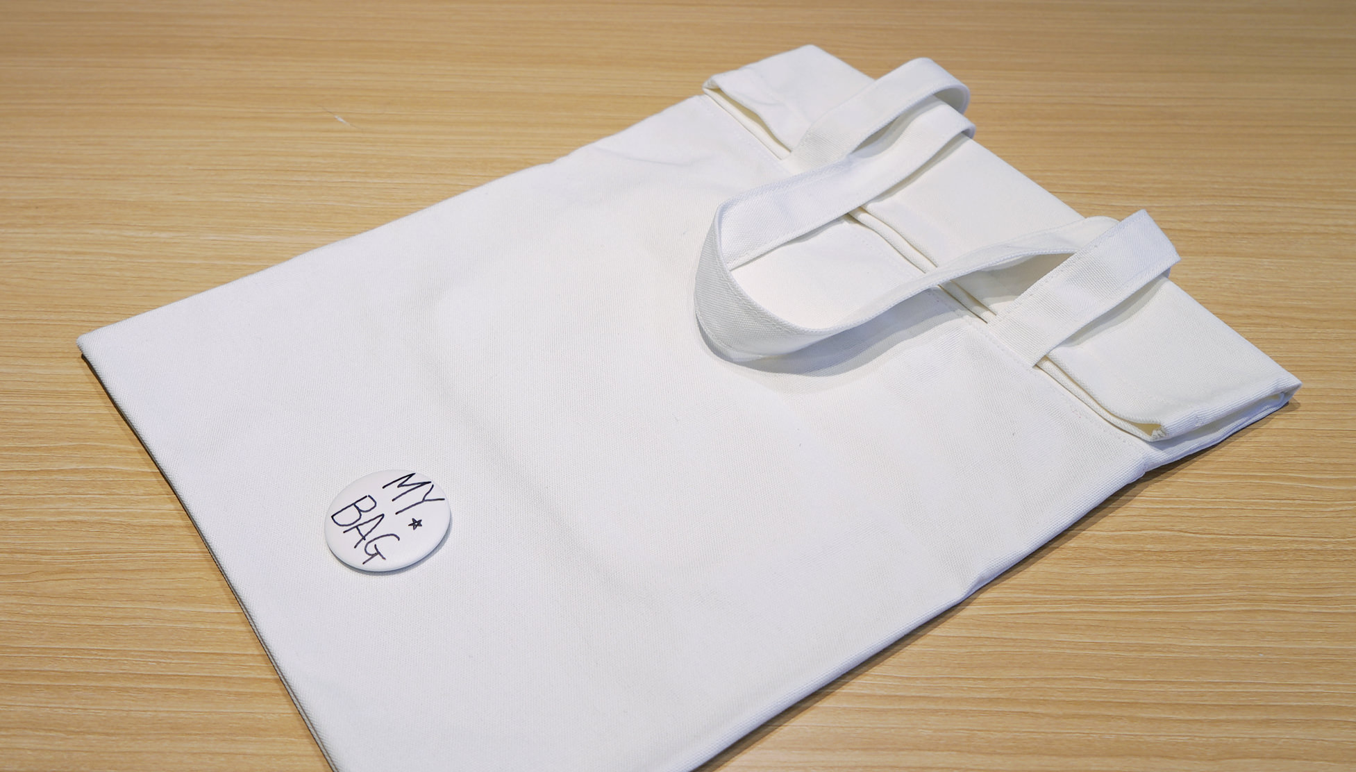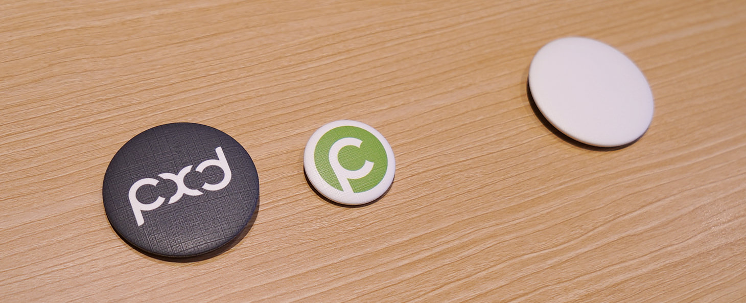 에코백 1개당 pxd 로고타입 뱃지, 그린 심볼 뱃지, 흰색 무지 뱃지 총 3가지를 제공하기로 했다. 인조가죽 재질로 만들어 에코백 원단과의 이질감을 줄였다. 흰색 무지 뱃지는 가방 사용자가 그림을 직접 그려 넣거나, 싸인 등 개인 취향에 따라 꾸밀 수 있게 제공했다. 사이즈는 2가지로 지름 32mm와 50mm로 제작했는데 이 역시 황금비율을 적용한 사이즈다. 콜록.