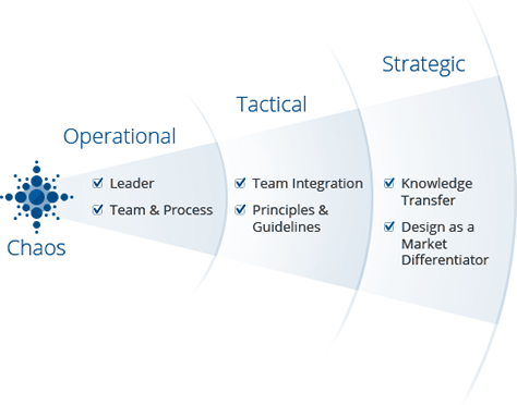 2단계: Tactical (UX가 다양한 조직과 연계하여 원칙과 가이드라인을 만들어 나가는 단계)