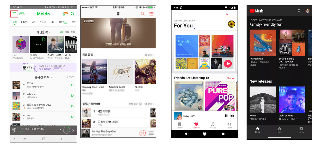 익숙한 레이아웃이 있는가? : 음악감상, 내비게이션 등의 특정 기능을 수행하는 앱이 있다면 다수 현지 회사들이 사용하는 레이아웃이 있는지 살펴봅니다. 지나치게 이질감이 느껴지지는 않는지, 이질감이나 거부감을 줄여주는 장치가 있을지, 어떤 부분을 경쟁사 대비 어필하면 좋을 지 확인할 수 있습니다.