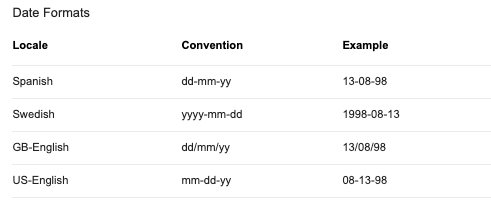 날짜/숫자/연락처/주소/이름은 어떻게 표시 하는가? : 측정값 이외에도 날짜를 표기하는 방식, 전화번호를 표기하는 방식, 금액을 표기하는 방식이 다릅니다. 해당 국가에서 통용되는 기준을 확인해야 오해를 줄일 수 있습니다. 이름도 성을 먼저 부르는 경우, 이름을 먼저 부르는 경우 순서가 다릅니다.