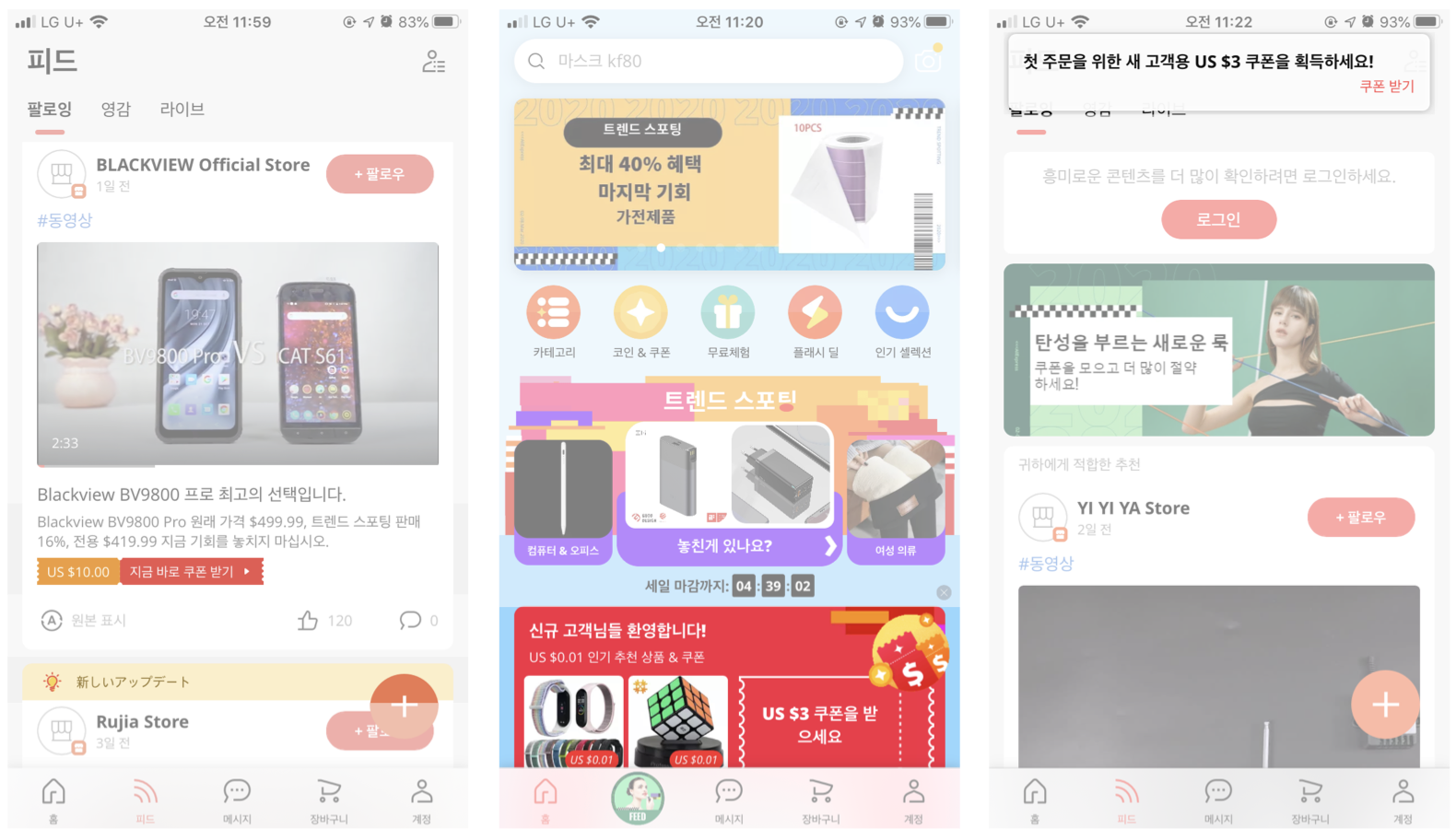 하지만 알리익스프레스의 경우, 앱 내 국가와 통화 유형이 한국, 원(KRW)으로 설정되어있음에도 가격 정보가 미국 달러(USD)로 표시되는 등 번역되지 않은 요소가 많았는데요. 대상 국가의 통화 유형에 맞게 일관성 있게 가격을 표기하는 것이 중요합니다.