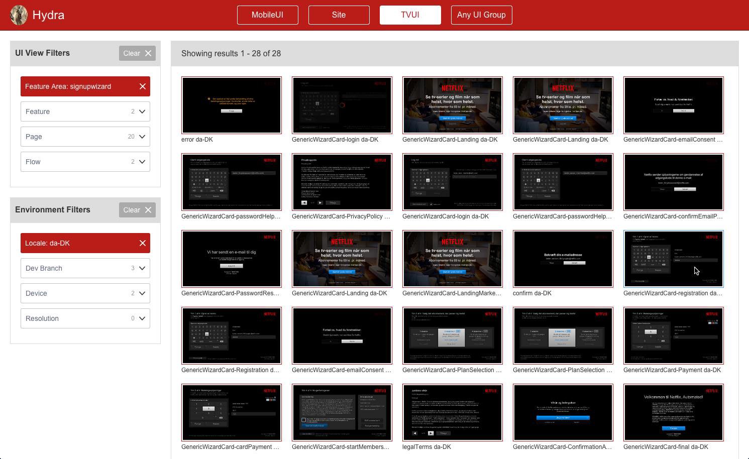 Hydra는 특정 언어, 특정 디바이스, 특정 화면 사이즈 별로 필터링하여 모아볼 수 있는 프로그램입니다. 현지화 담당자가 쉽게 원화는 화면을 확인하고 UI상의 이슈가 없는지 확인할 수 있다고 합니다.