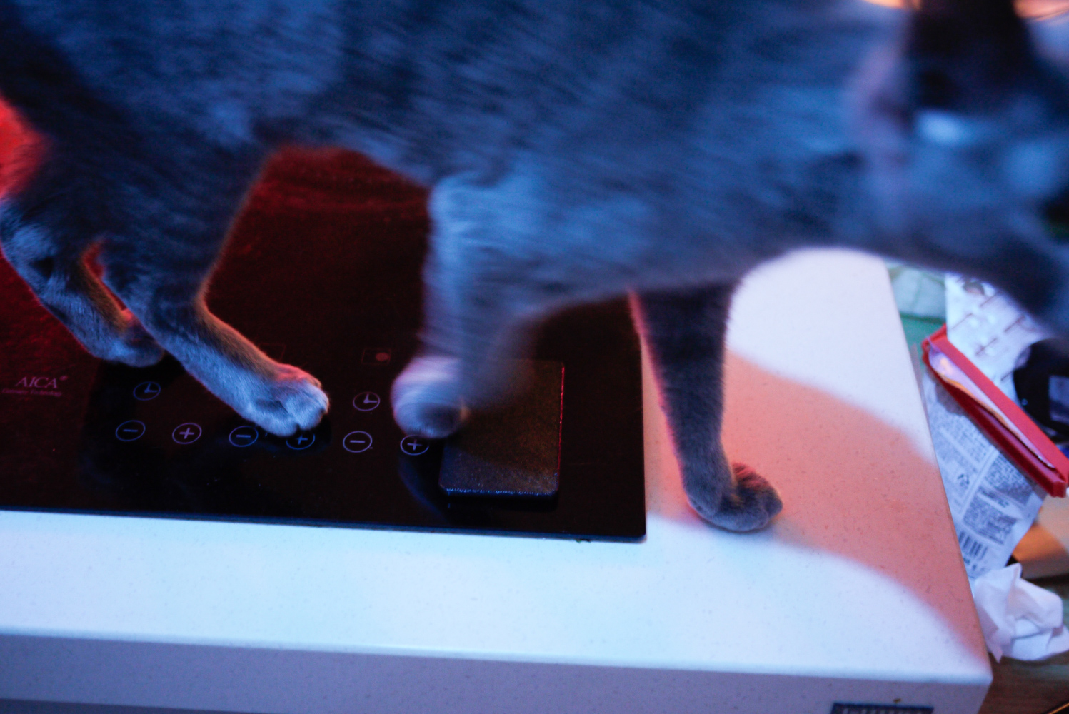 이사를 오고 나서, 그리고 우리 고양이 프라이데이가 조금씩 크고 나서, 싱크대와 인덕션이 있는 곳까지 올라가기 시작했습니다. 언젠가, 설거지를 하는데 프라이데이가 인덕션을 왔다 갔다 하다가 인덕션 전원 스위치를 누르고 온도를 올리기까지 했어요. 이러다 언젠가 정말 불이 나겠다 싶어서 급하게 대충 막아놓고 지내다가, 얼마 전에 전원 스위치가 있는 부분을 가릴 수 있는 도구를 만들었습니다. 인터넷으로 그런 장치 판매하는 것이 있는지 여기저기 찾아봤는데, 마땅한 것이 없었죠. 대신 신박한 방법이 하나 있긴 했는데, 물티슈 커버를 사용하는 것이었습니다.