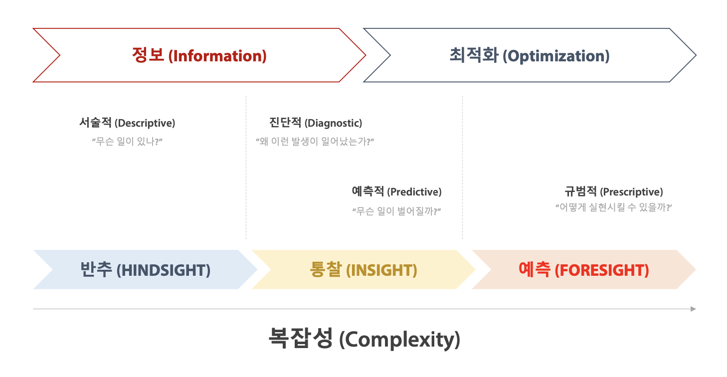 일반적으로 연구적인 관점에서는 데이터 사이언스의 과정 중'앞으로 무슨 일이 벌어질까?'라는 질문의 답을 찾는 예측적(Predictive) 과정에서 멈추지만, 실무에 데이터를 적용할 경우 어떻게 '실현시킬 수 있을까?'의 답을 찾는 규범적(Prescriptive) 과정이 꼭 필요합니다. 이렇게 ‘어떻게 실현시킬 수 있을지’ 고민을 하는 과정 (Prescriptive)이 Data-Driven Approach의 주요 주제인 액션 플랜 만들어내는 과정이라고 할 수 있습니다.