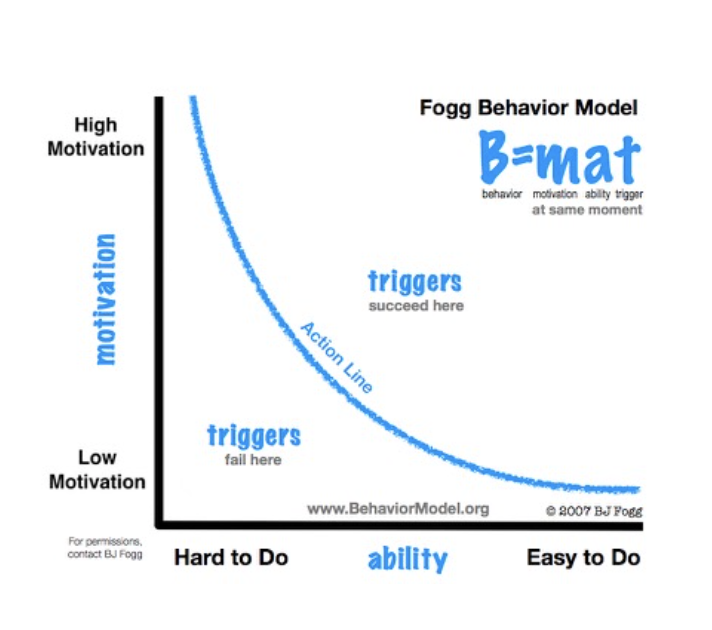 넛지는 제품, 즉 개입 (Intervention)을 통해 전달될 수 있는데요. 스탠퍼드 포그 교수의 Persuasive Technology (2002)라는 개념을 통해 설명하자면, 사람의 동기 수준과 능력 수준에 따라 다른 트리거, 넛지를 제공하는 것이 ‘개인차’를 고려한 개입(Intervention)이라고 할 수 있습니다.