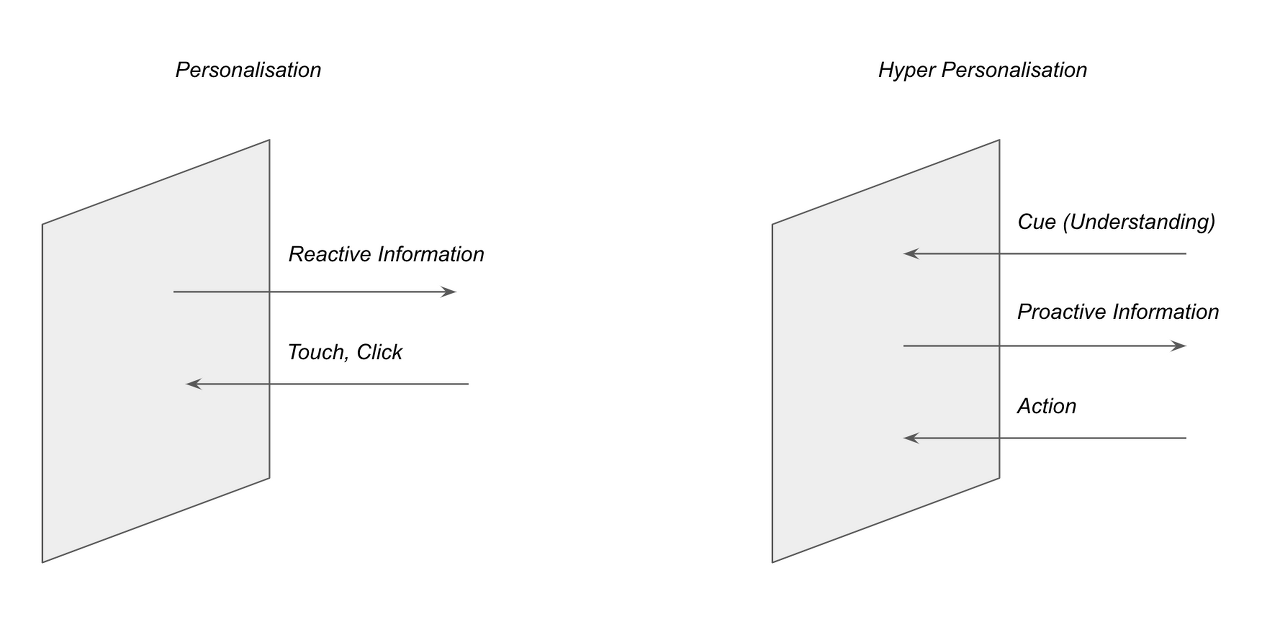 기존의 화면 내에서 정보를 제공하고 이에 대한 클릭, 터치를 이끌어 내는 방식의 인터랙션 방식이 주를 이루었다고 하면 사용자의 콘텍스트를 인지하기 위한 다양한 센서들의 활용을 통해 사용자를 이해할 수 있는 단서들을 획득하고 이에 따른 Proactive 한 콘텐츠를 제공하는 초개인화된 서비스를 제공할 수 있습니다. 이에 대한 액션은 기존의 클릭, 터치뿐만 아니라 보이스, 표정, 손짓이 포함될 수 있습니다. 이러한 방식을 통해 실시간으로 사용자의 상황에 맞게 콘텐츠를 제공하여 온택트 서비스에서의 경험을 더욱 풍성하게 할 수 있을 것입니다.