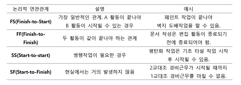 반대로 업무를 배분할 때는 클라이언트에게 전달해야 할 산출물을 먼저 생각합니다. 언제까지 어떤 요구사항을 담아서 만들어야 하는지 생각하고, 산출물을 구성하는 작은 덩어리로 나눕니다. 각 덩어리 간에 선후/인과 관계가 있을 수도 있고(아래 선후행 도형법 참고), 실제 산출물이 아니라 밑바탕이 되는 작업이 있을 수 있습니다. 이렇게 '만들어야 할 덩어리'를 리스트업 해봅니다. 다음으로는 각 덩어리를 누구에게 분배하는 게 적합할지 고민해서 누가 언제까지 덩어리를 완료할 것인지, 하나로 합쳐서 톤을 맞추는 작업 시간을 고려해서 배분합니다.