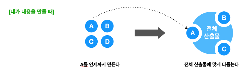 일을 배분하던 과정을 생각해보면(저도 처음(?) 하는 것이라 잘한 건지는 모르겠지만) 제가 일을 받아서 하던 과정과 역순으로 생각했던 것 같습니다. 보통 'A라는 내용을 이때까지 만든다'라고 하면 내용 덩어리를 만들고, 다른 분들이 만든 내용과 합쳐서 하나로 이어지게 톤/순서를 다듬었습니다.
