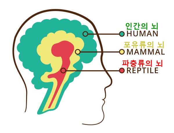 미국 심리학자 폴 매클린은 인간의 뇌는 삼위일체로 구성된다고 말했는데요. 이성의 뇌(영장류), 감정의 뇌(포유류) 그리고 생명 유지의 뇌(파충류)로 구성됩니다. 인간은 본능적 판단에 따른 감정의 변화, 최종적으로는 여러 정보를 조합하여 논리를 판단할 수 있습니다.