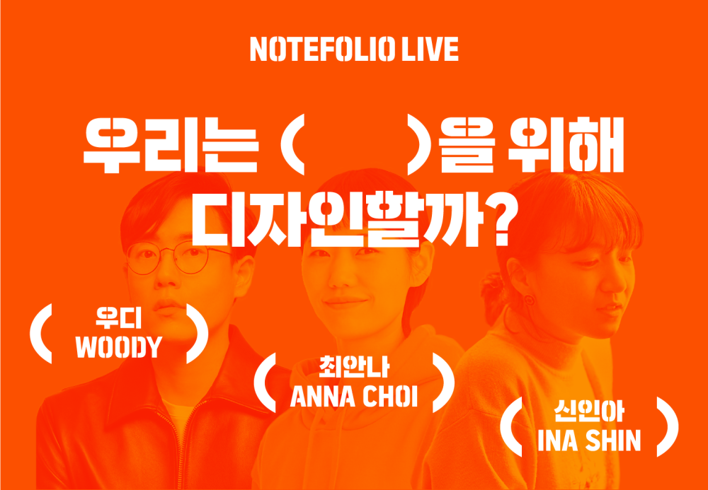 지난 7월 10일 토요일 노트폴리오에서 주관한 세미나 '우리는 ( )을 위해 디자인할까?'에 참여했습니다. '가치를 추구하는 디자인'이라는 주제로 세 명의 디자이너(우디, 최안나, 신인아)의 진솔한 이야기를 들었습니다. 본 세미나 중 인상 깊었던 세션과 함께 거듭 반문하게 된 몇 가지 질문을 공유하고자 합니다. 함께 고민해주세요!