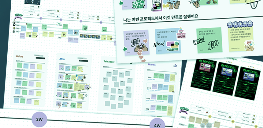 프로스펙티브와 레트로스펙티브에서 얻을 수 있는 유익한 가치가 분명히 있기 때문에 재택근무에서도 계속하여 효과를 볼 수 있어야 합니다. 그리고 대면에서 느낄 수 있는 표정의 변화, 비언어적 표현과 감정 교류를 온라인에서도 이모티콘이나 스티커, 댓글 등의 부수적인 요소로 어느 정도 보충할 수 있습니다. 더욱이 편안하면서도 유쾌한 분위기로 진행한다면 집중도 역시 떨어지지 않으며, 프로젝트나 팀원과 관련된 디지털 자료를 즉각 활용하면서 오프라인보다 더욱 풍부한 이야기를 나눠 볼 수도 있었습니다.