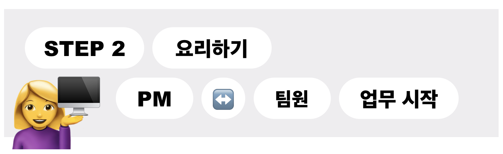 지금까지 재택근무에서 고군분투하는 팀원의 모습을 '주문하기 > 요리하기 > 배달하기'라는 프로세스에 비추어 이야기했습니다.