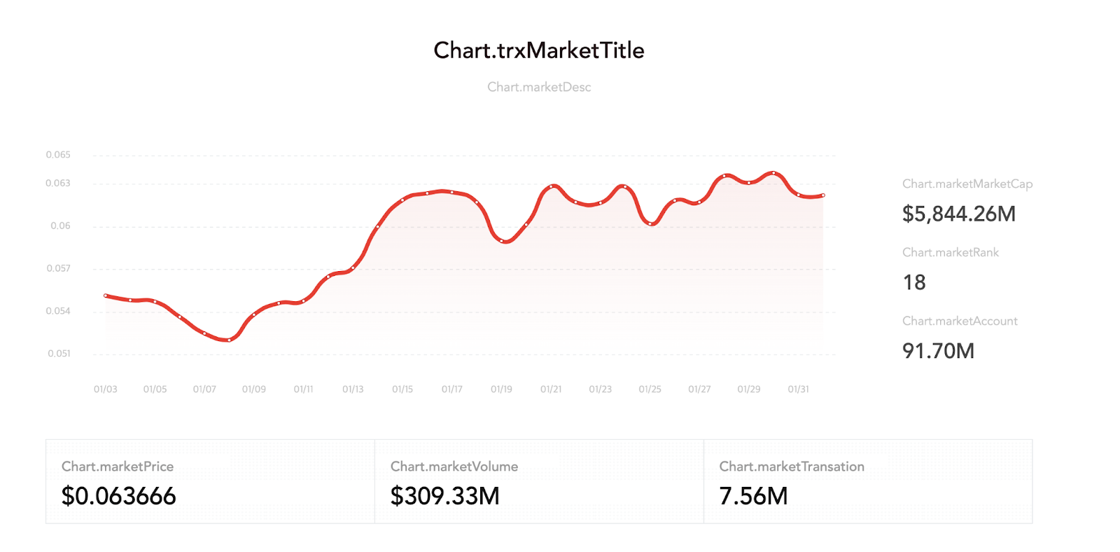 다른 네트워크 브랜드인 TRON은 정량적인 수치와 더불어 가격 변동 그래프도 제공해 현재의 수치뿐 아니라 가격 변동의 방향성을 확인할 수 있습니다. 이는 브랜드 사이트 방문자의 기대감을 자극하는 사례로 꼽을 수 있습니다.