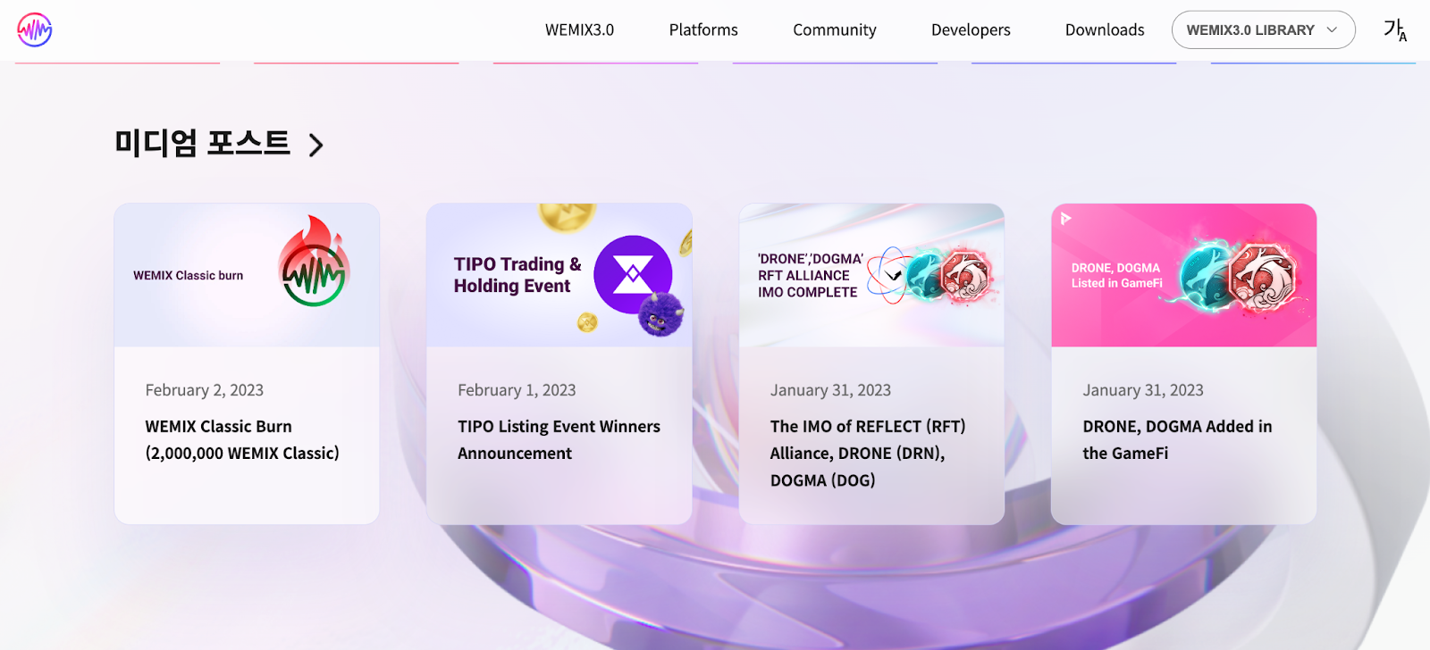 위믹스의 미디엄 포스트 전달 [출처: https://www.wemix.com/en]
