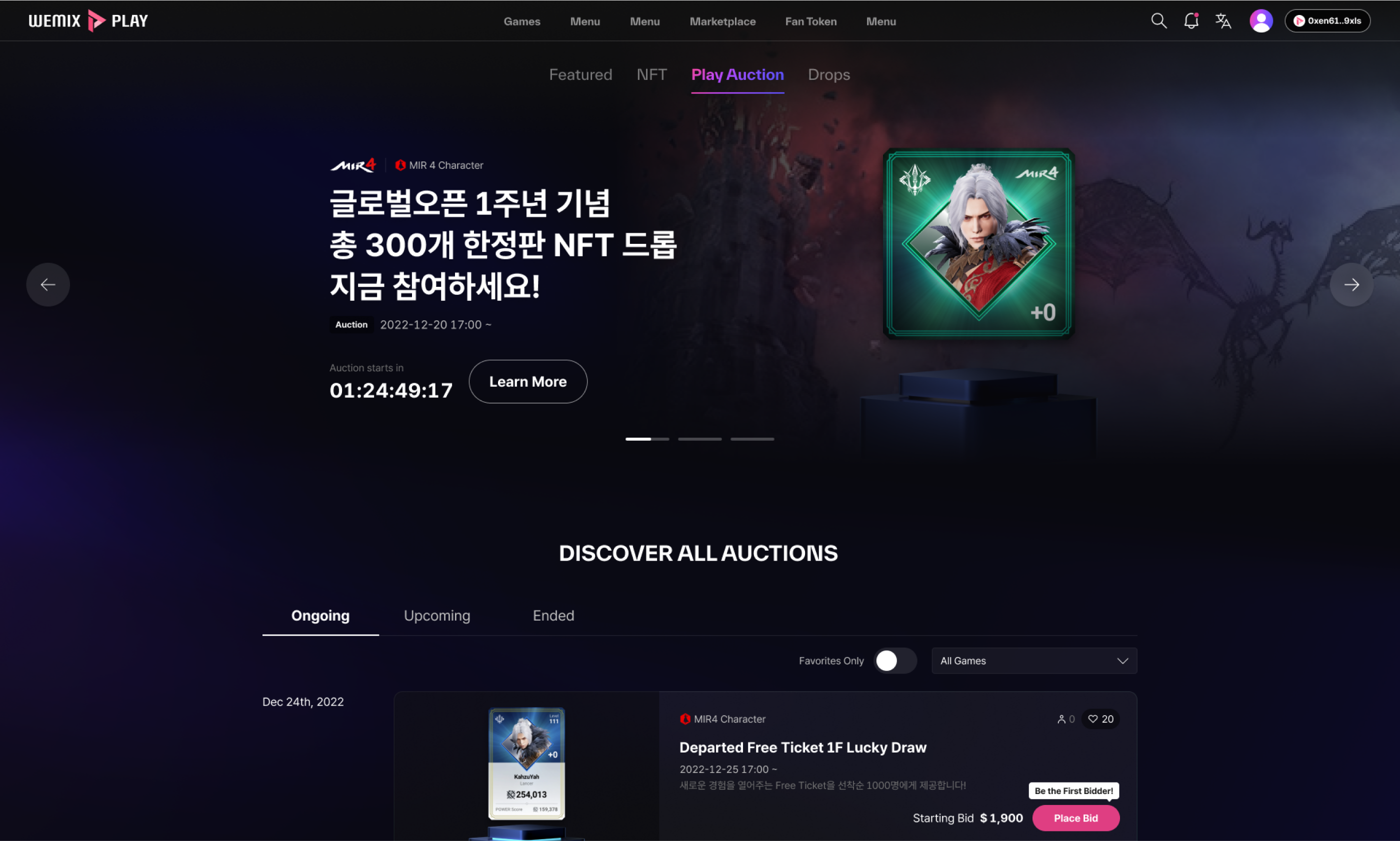 Marketplace 이용자는 모두 함께 Play Auction 상황을 지켜볼 수 있습니다. 누가 얼마에 NFT를 쟁취할 것인지, 박진감 넘치는 게임을 관전하는 것처럼 NFT 거래를 즐길 수 있는 것이죠.