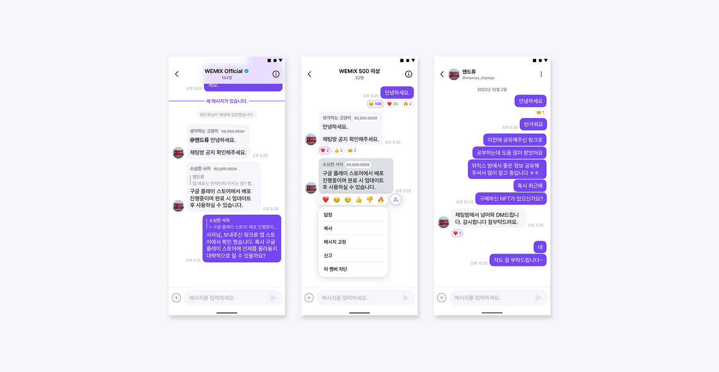 이용자는 자산 상황에 따라 조건과 필요에 맞는 채널에 입장해 다른 홀더들, Fan Token 크리에이터, 비슷한 관심사를 가진 사람들과 대화를 나눌 수 있습니다. 채널 내에서 만난 이용자와 조금 더 긴밀한 대화를 나누고 싶다면 DM(Direct Message)을 보낼 수 있습니다. 직접 원하는 조건을 설정해 채널을 개설할 수도 있죠.