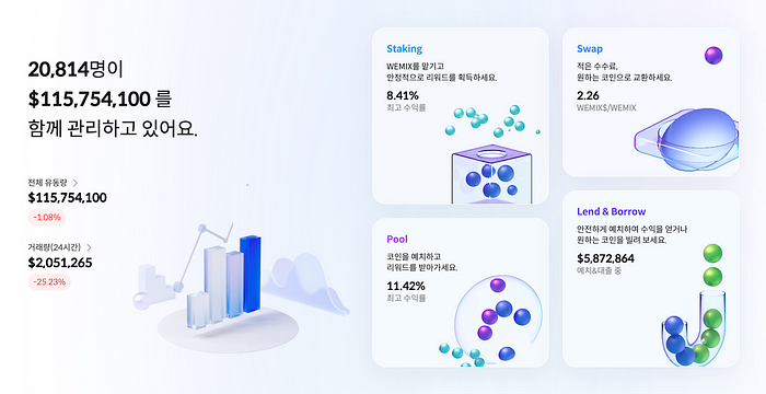 WEMIX.Fi는 블록체인 금융 UX에서 당연하게 여겨지던 ‘불편함’을 완전히 탈피하여 더 많은 사람이 DeFi 서비스를 경험할 수 있도록 돕고자 합니다.