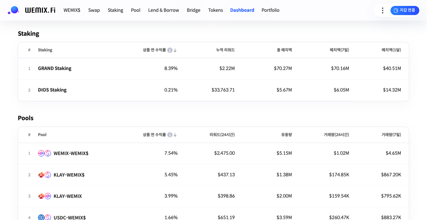 블록체인 기술을 기반으로 한 DeFi에서는 기존 금융 서비스에 비해 상대적으로 코인의 시세 변동이 자산에 큰 영향을 미치기 때문에 이러한 시장 상황을 기민하게 파악하는 것이 중요합니다. WEMIX.Fi가 제공하는 양질의 정보를 통해 이용자는 더욱 효율적으로 자산을 관리할 수 있을 것입니다!