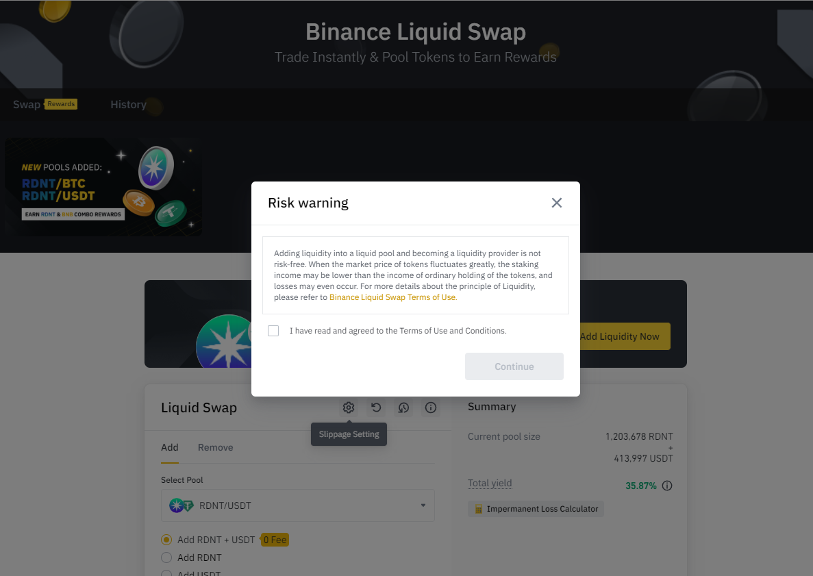 Binance의 경우 Pool 예치화면에 진입하면 팝업을 통해 위험성을 고지하고, 비영구적 손실 계산기 같은 부가 기능을 제공하고 있었는데요. 이러한 요소들이 유저가 스스로 위험성을 판단하고 투자를 결정하는데 도움이 되는 요소라는 생각이 들었습니다. 기존 은행 상품처럼 관련 용어에 대한 설명과 위험성을 각 상품 페이지에 함께 고지하는 방법 또한 고려해 볼만한 형태일 것 같습니다.