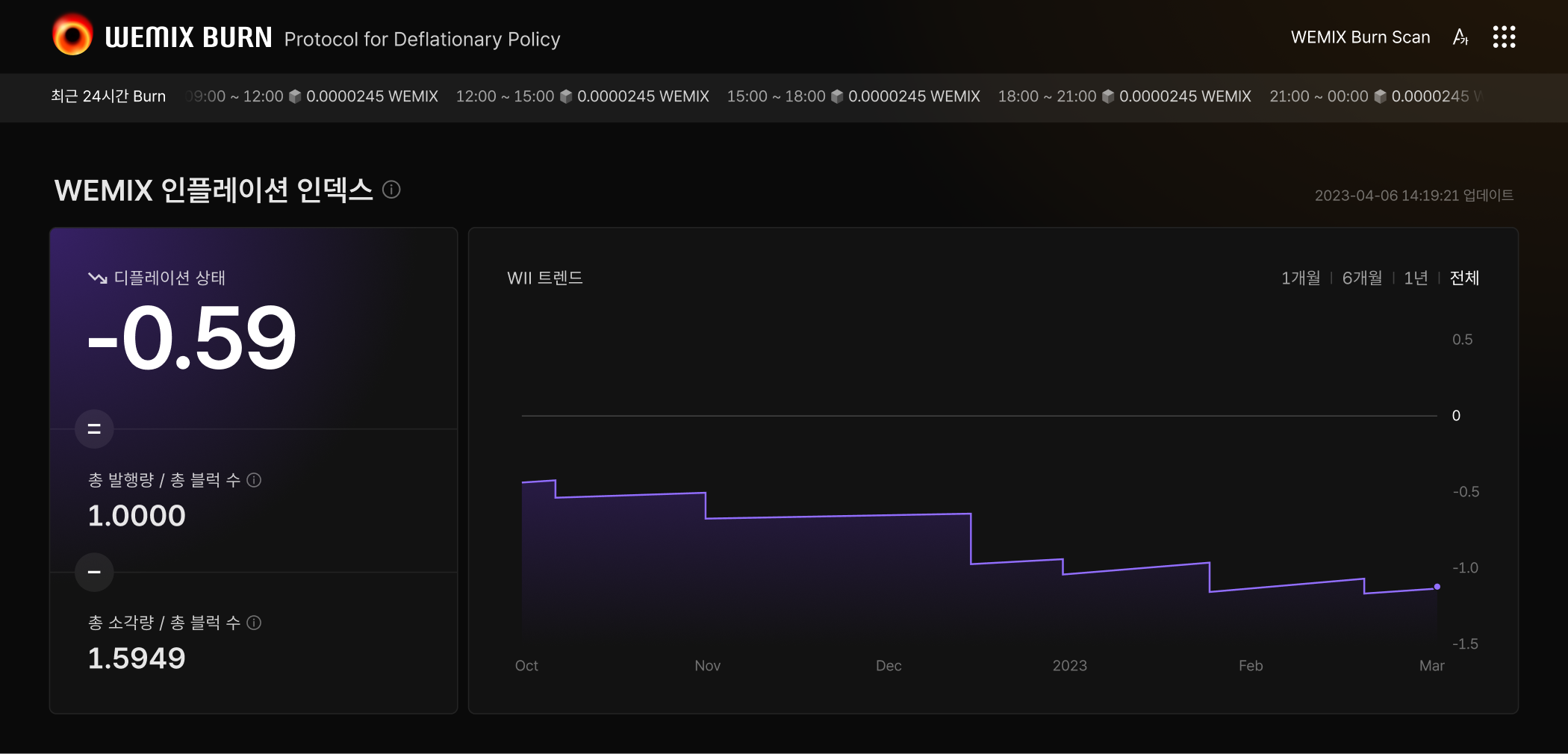 그렇다면 WEMIX 생태계에서는 어떨까요? 소각에 대해 알고 싶은 누구나 WEMIX BURN에서 쉽고 편하게 확인할 수 있습니다. 일일이 찾지 않아도, 플랫폼에 접속만 한다면 WEMIX 토큰 소각 프로그램의 종류와 기준은 물론, 재단이 공시한 대로 소각했는지, 지금까지 얼마나 소각했는지 등을 바로 알 수 있죠.