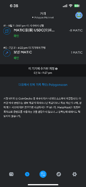 이러한 측면에서 아쉬웠던 월렛은 메타마스크와 플레이 월렛이었는데요. 타 월렛에서 자산을 전송한 뒤, 해당 월렛들에서 성공적으로 수령 했는지 파악하기 힘들었기 때문입니다. 전송한 월렛에서 거래 승인을 한 뒤, 메타마스크와 플레이 월렛에 복귀했을 때에 직전 진입 상태에서 무엇이 변했는지 가시적으로 드러나지 않아 몇번이고 홈화면에서 새로고침을 시도했지만 여전히 자산 현황이 변했다는 사실을 인지하기 어려웠습니다. 전송한 월렛의 거래내역에서 거래가 성공적으로 이루어졌다는 정보를 확인하고서야 비로소 안심을 할 수 있었죠.