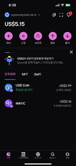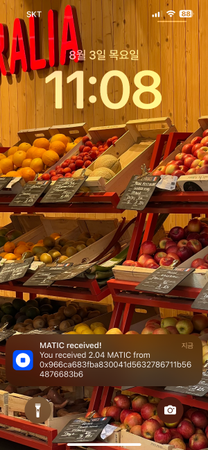 반면 코인베이스의 경우 전송 월렛에서 거래 승인을 하고 얼마지나지 않은 시점에 푸시알림을 통해 얼마만큼의 자산을 수령했다는 정보를 주었습니다. 덕분에 앱을 진입하지 않고도 안전하게 전송이 이루어졌다는 사실을 인지할 수 있었죠.