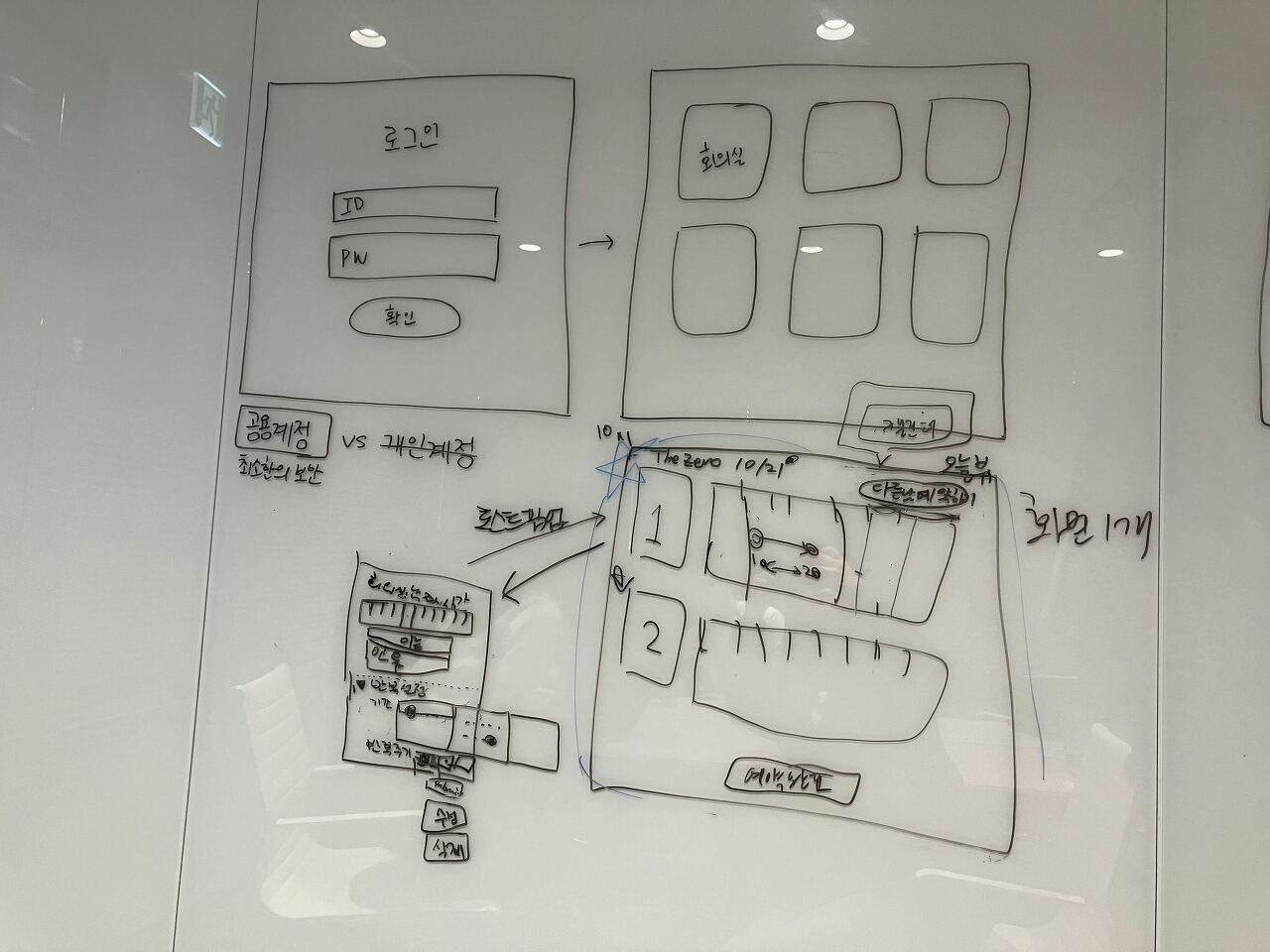 프로젝트를 시작하기에 앞서 해당 프로젝트(플랫폼) 이름을 정하는 것 또한 중요하기에 팀원들의 다양한 아이디어를 모아 논의를 시작했습니다. The1, The2, The3 등 회의실 이름에서 영감을 얻어 최종 ‘The0(The Zero)’로 결정하게 되었으며, 현 회의실 예약 시스템의 불편한 점을 개선해 사용자에게 더 나은 경험을 제공하기 위한 첫 번째 의미인 ‘0부터 시작’이란 의미를 담고 있습니다.