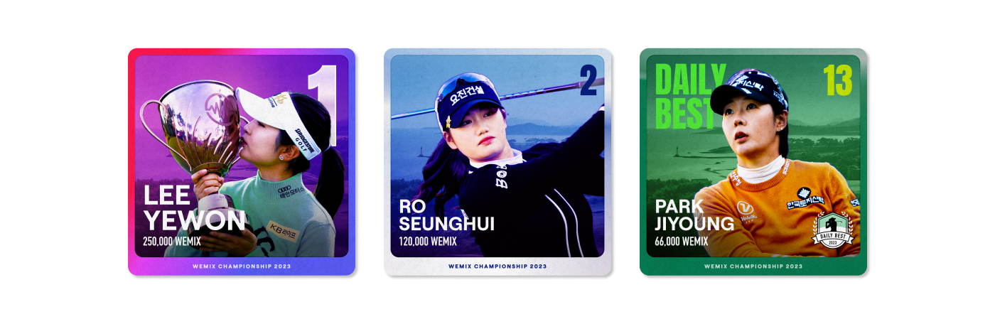세계 최초의 블록체인 기반 골프 프로젝트, WEMIX CHAMPIONSHIP(위믹스 챔피언십)에는 프로젝트 곳곳에서 중요한 역할을 수행한 네 가지의 NFT가 있었습니다. 숱한 고민과 질문을 거쳐 NFT가 우리에게 오기까지의 과정을 들여다봤습니다. 정상을 차지하기 위해 이어진 선수들의 레이스, 그 이면에는 대회의 NFT를 만들기 위한 또 다른 레이스가 펼쳐지고 있었죠. 지난번 살펴봤던 ‘Race to WEMIX CHAMPIONSHIP 2023 NFT 컬렉션’에 이어 이번에는 왕중왕전이라 할 수 있는 ‘WEMIX CHAMPIONSHIP 2023(이하 WC 2023)’ 대회 현장에서 활용된 티켓 NFT와 ‘Winners of WEMIX CHAMPIONSHIP 2023 NFT 컬렉션(이하 상금 NFT)’ 그리고 ‘WEMIX CHAMPIONSHIP 2023 Lucky Draw NFT 컬렉션(이하 경품 NFT)’ 총 세 가지의 NFT가 만들어진 과정을 살펴보겠습니다.