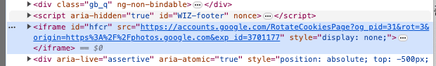 놀랍게도 구글 포토 사이트 내에 iframe을 통해 accounts.google.com의 세션을 유지하고 있었습니다. 이렇게 한 브라우저 창 내에서 여러 도메인의 세션을 유지하며 구글은 로그인을 유지할 수 있었던 것입니다.